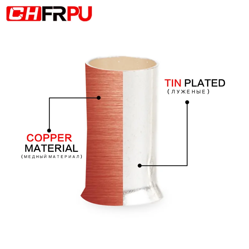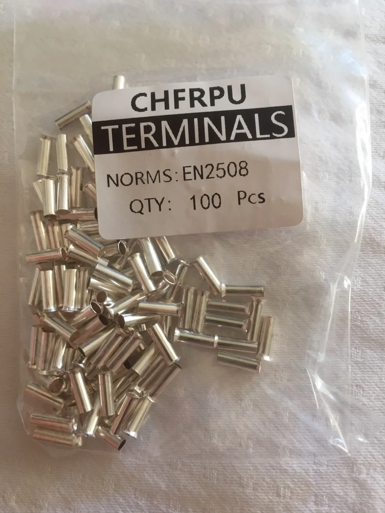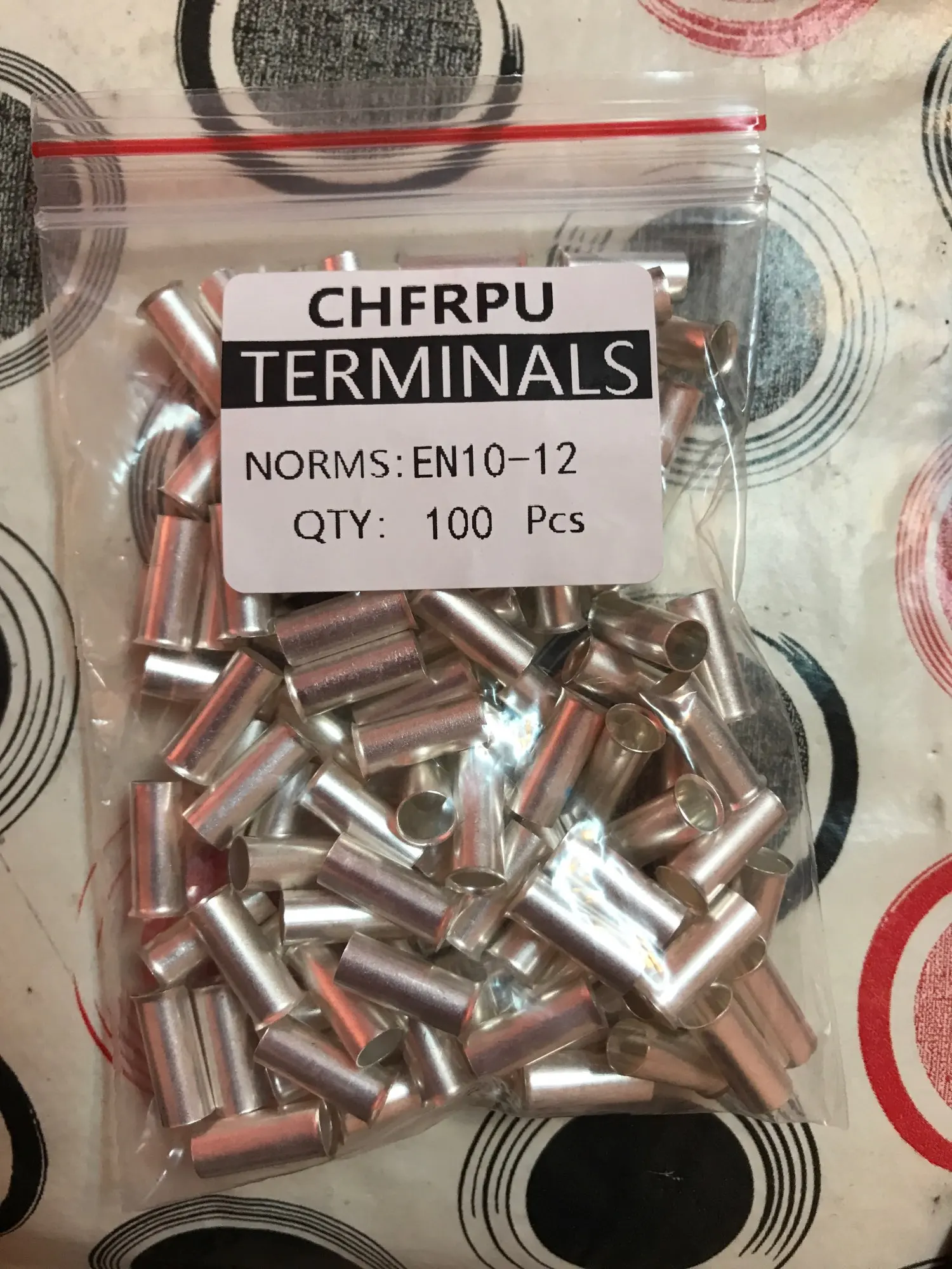 Обжимные наконечники для электрического кабеля, 100 шт., 0, 5 мм2-16 мм2, 22-10 AWG, неизолированные, медные, луженые, обжимные наконечники
