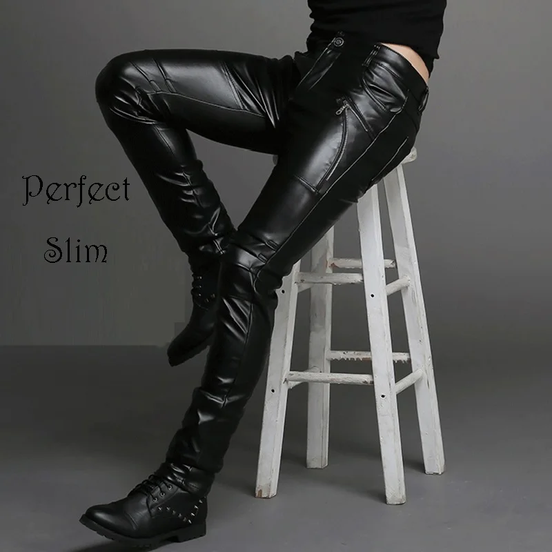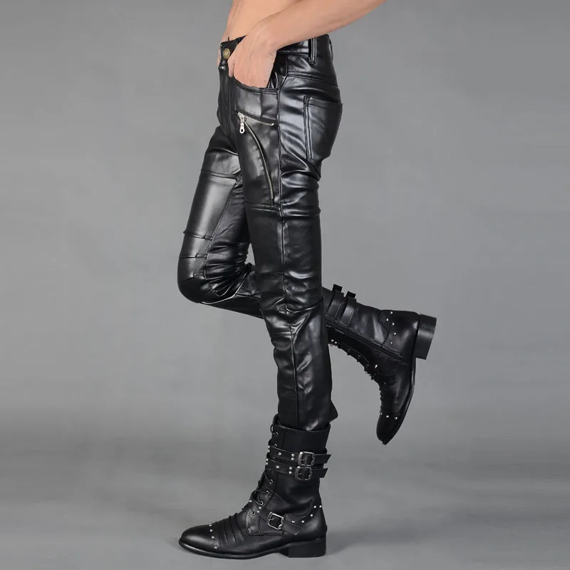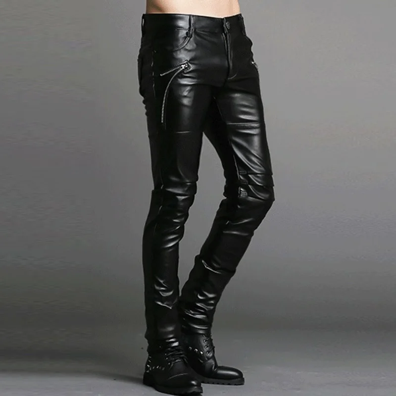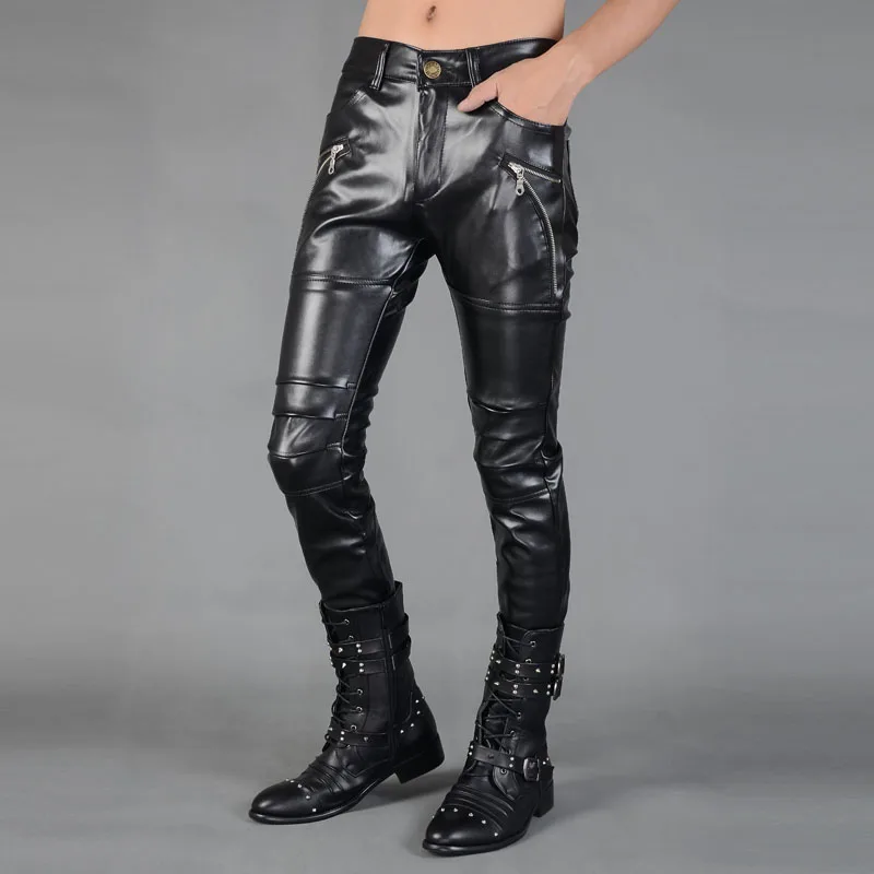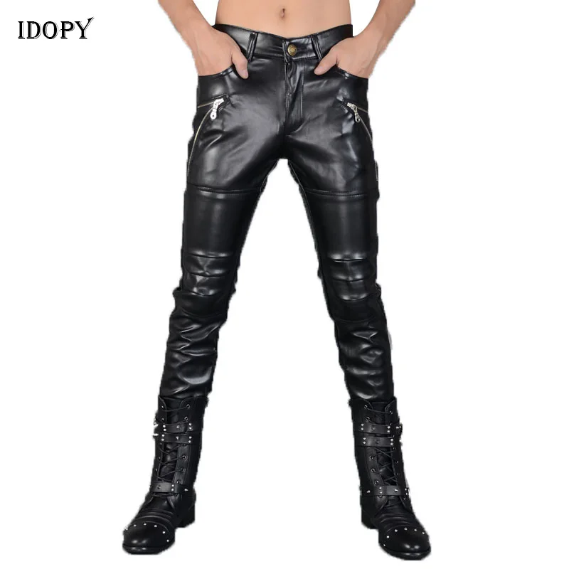 Мужские кожаные брюки Idopy в стиле панк, облегающие брюки из искусственной кожи на молнии для вечерние, сценических выступлений, ночных клубов, стимпанк