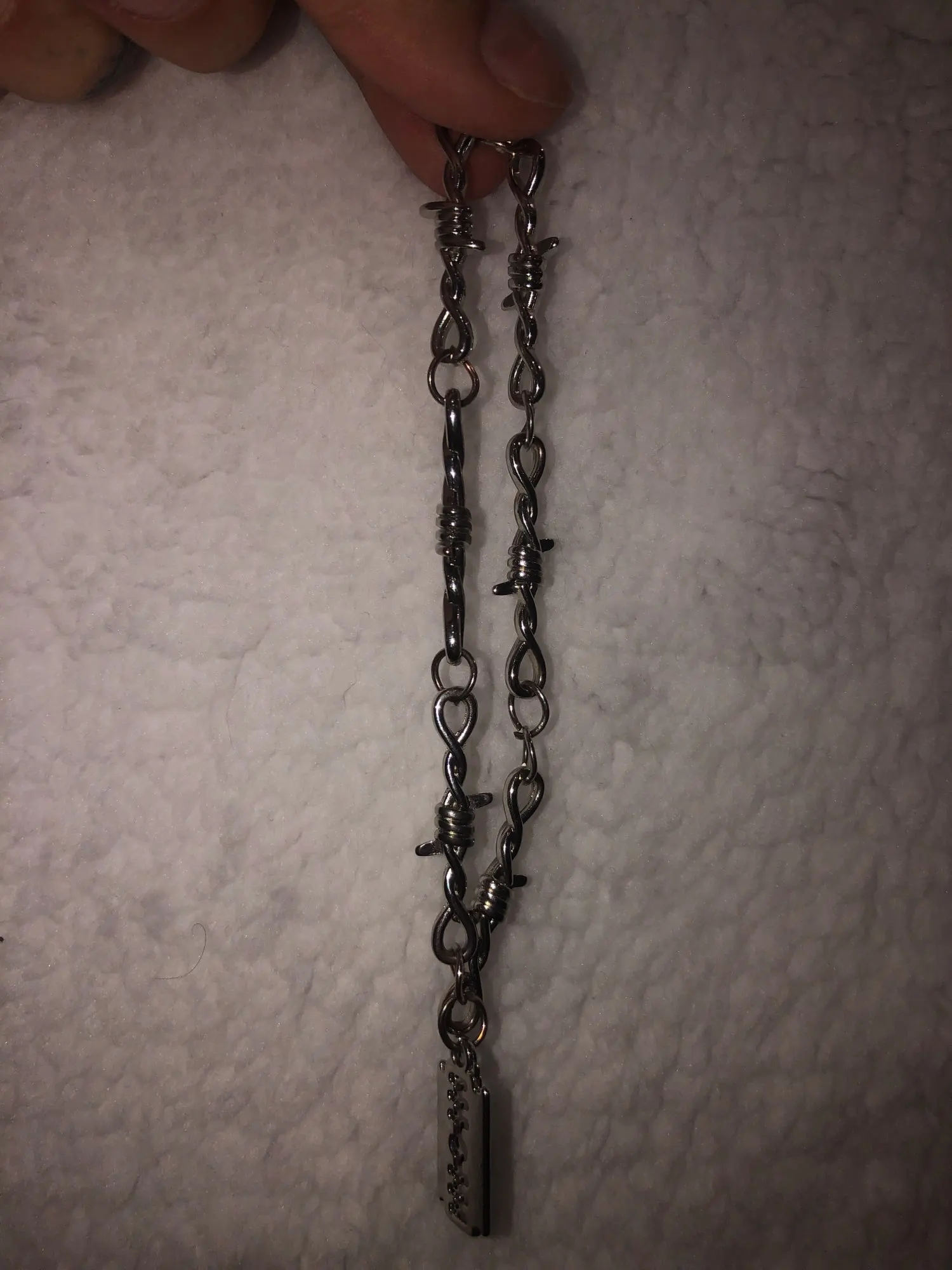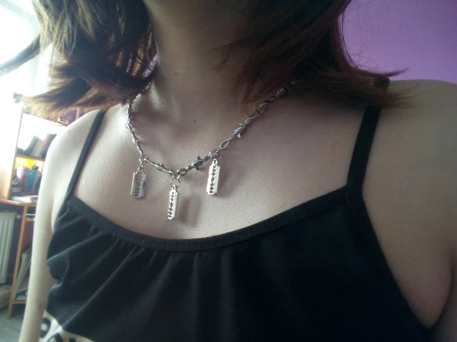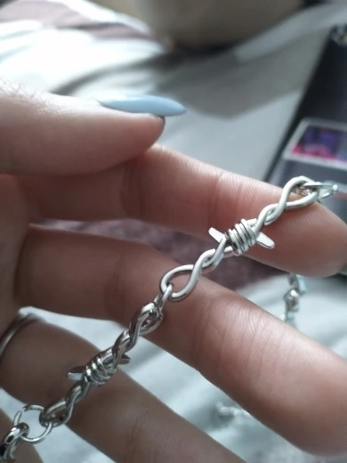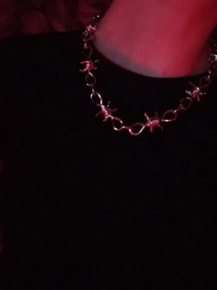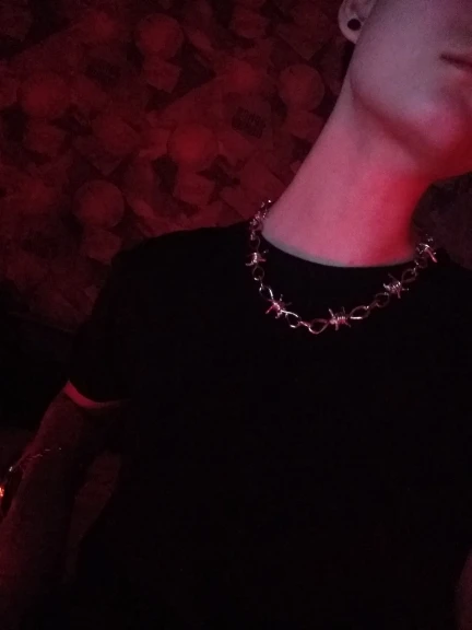 Все как на фото. Очень довольна товаром. Носить можно как чокером, так и как обычной цепочкой, длиной чуть ниже ключиц. На шее почти не чувствуется, одноко, думаю если сильно дёрнуть, может порваться. Смотрится отлично, хорошо сочетается с одеждой. Дошло вполне быстро, вместе с другими аксессуарами. В общем, всем советую