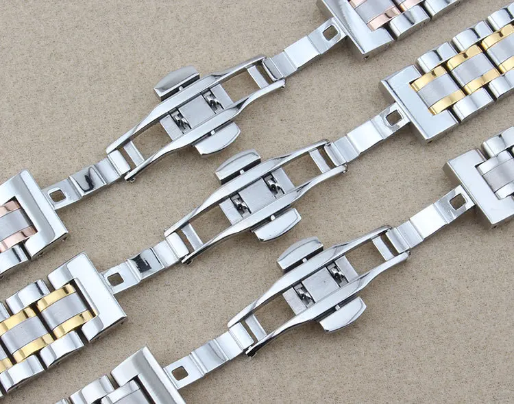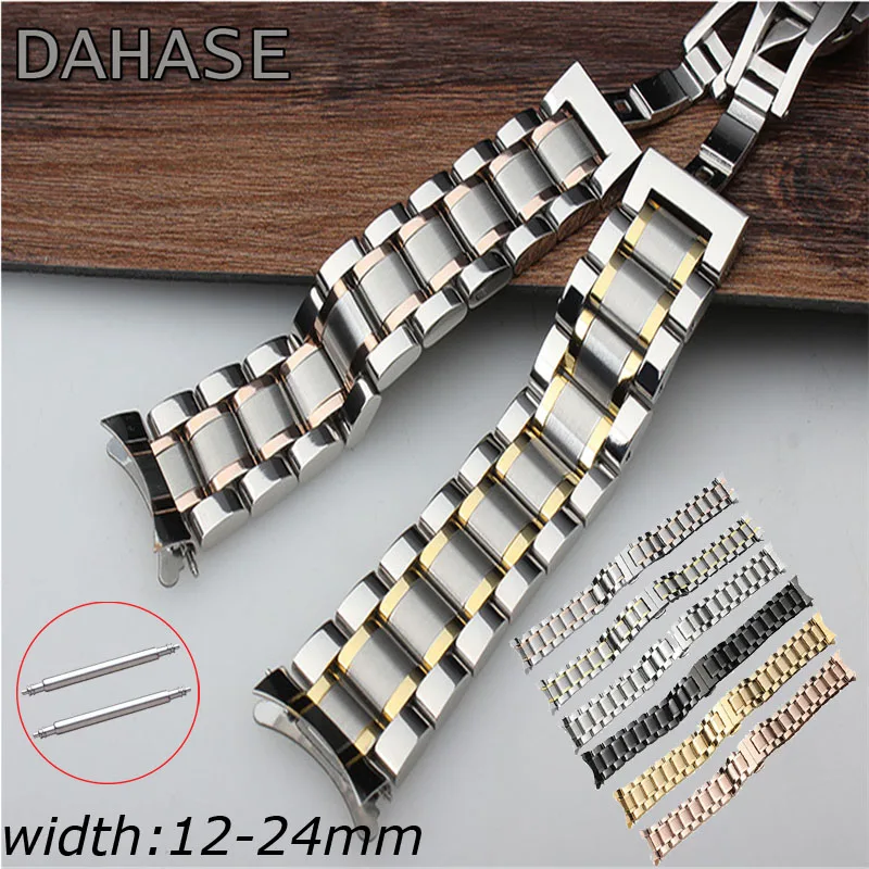 Ремешок для часов 12, 14, 15, 16, 17, 18, 19, 20, 21, 22, 23, 24 мм, из нержавеющей стали, ремешок для часов с загнутыми концами, с пряжкой-бабочкой, браслет