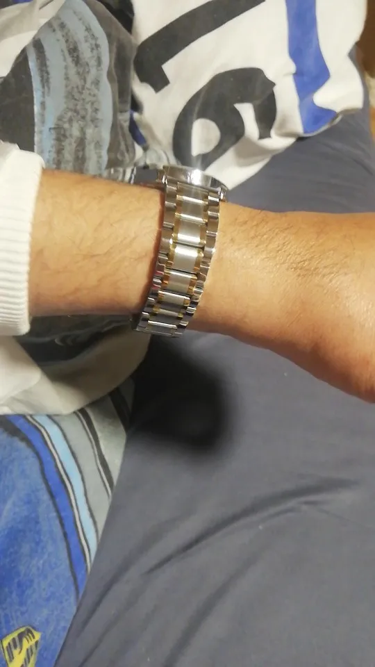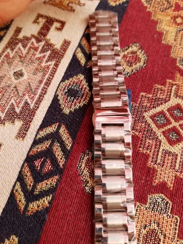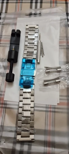 Очень красивый и хороший ремешок, намного лучше, чем оригинальный Seiko, который складывается из латуни; Нержавеющая сталь, красивая полировка, очень хорошая застежка. Очень хорошо сидит на моих часах. Только одна деталь, одна из звеньев, подходящих к часам, пришла в тугу.