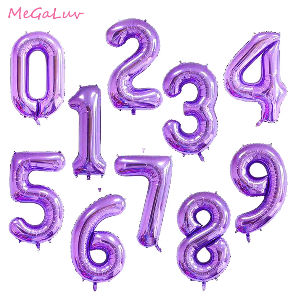 40 дюймов фиолетовый зеленый большое количество 0-9 день рождения украшения гелиевая фольга Большой номер воздушный шар