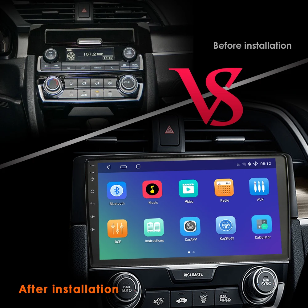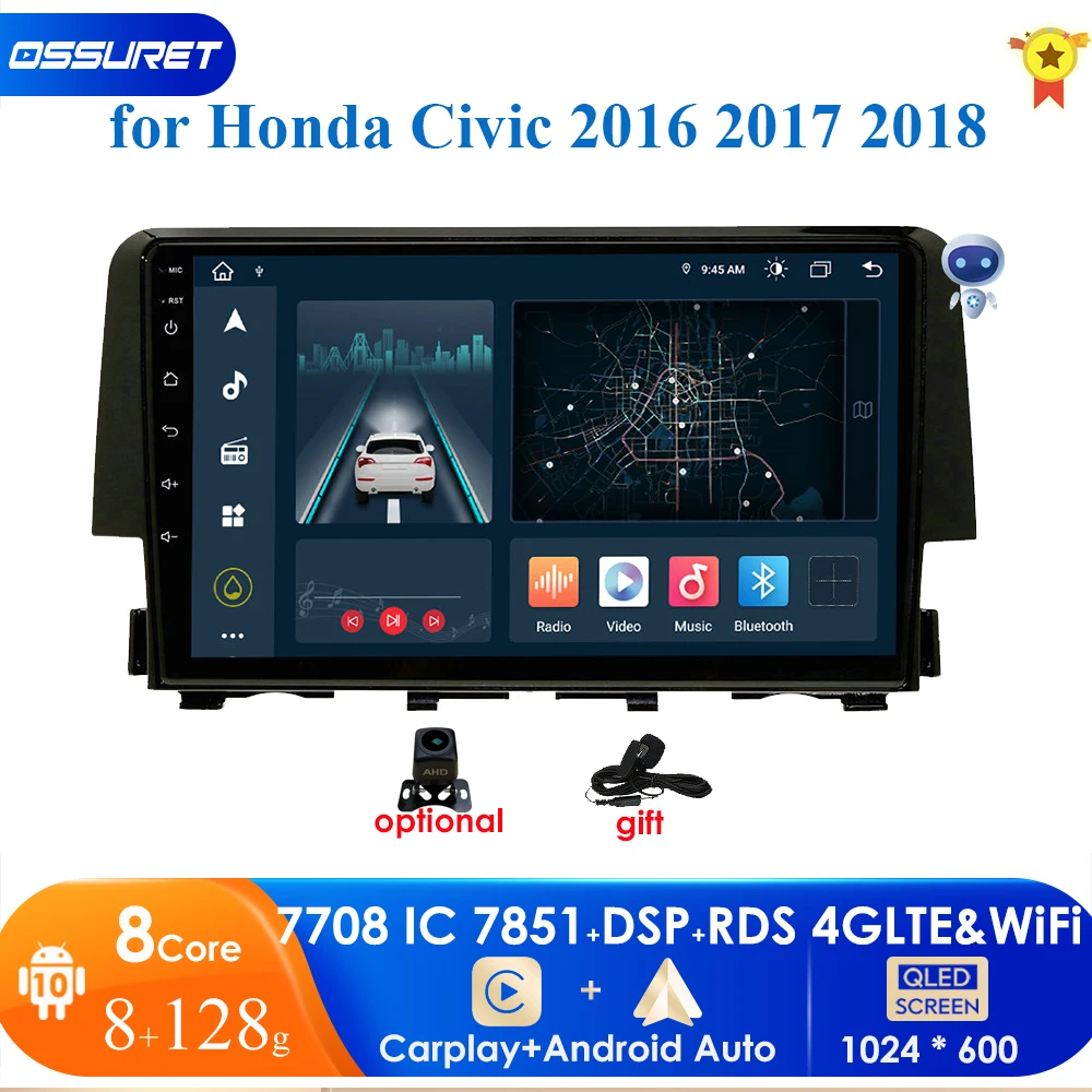 Автомагнитола 4G-LTE, 2din, Android 10, автомобильный мультимедийный плеер с Gps-навигацией для Honda Civic 2016, 2017, 2018, автомобильный монитор, головное устройство Usb BT