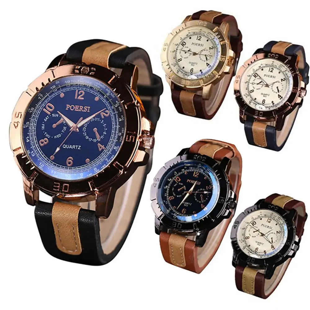 Роскошные мужские часы, аналоговые кварцевые двухцветные часы из искусственной кожи с ремешком, уникальный дизайн циферблата, наручные часы erkek kol saati zegarek Q