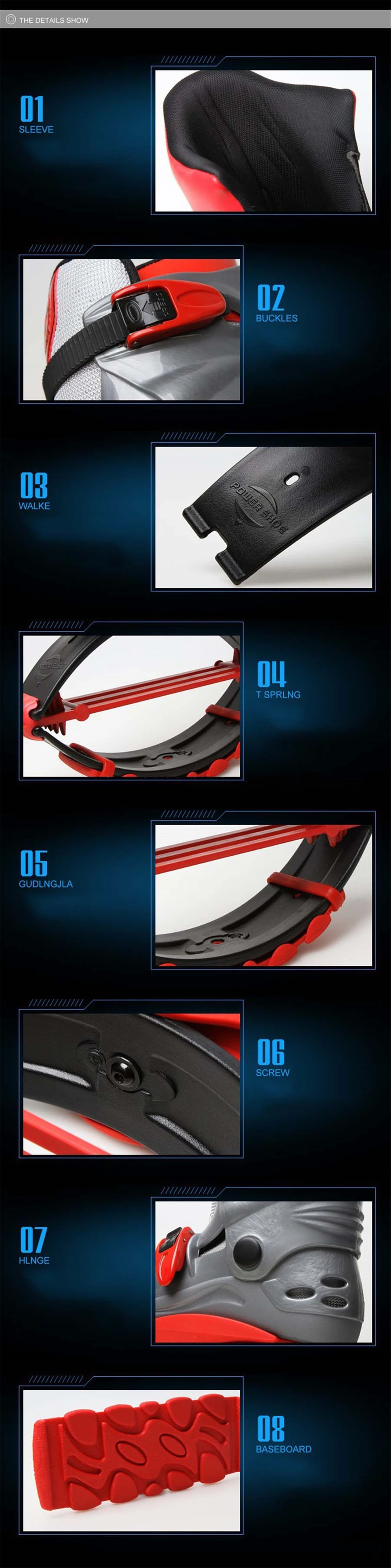 Добро пожаловать в наиболее профессиональные коньки, Japy skating group. Если у вас есть какие-либо вопросы, вы можете связаться с нами следующими способами: WhatsApp: + 8613918266317 Wechat: japy123456 Примечание: S для веса тела 20-40 кг (44lbs-88 фунтов); Длина ступни: 21-21,5 см M для веса тела 30-50 кг (66lbs-110 фунтов); Длина ступни: 21,5-22,5 см L для веса тела 50 кг-70 кг (110lbs-154lbs); Длина ступни: 23 см-24 см XL для веса тела 70-90 кг (154lbs-198lbs); Длина ступни: 24,5 см-26 см XXL для веса тела 90-110 кг (198lbs-243lbs); Длина ступни: 26,5-28,5 см 1, снимает удар и вибрацию с помощью амортизирующего устройства (гибкая пружина). 2, легко использовать с обувью, подходит для вашего веса и длины ноги. 3. Таким образом, для взрослых Можно сжечь больше калорий и улучшить фитнес. Для детей это полезно для улучшения кровообращения и роста ossature, а затем для того, чтобы быть выше. 4, для пробежек, бега или даже прогулок, обувь, не требующая гравитации, с каждой веселой ступенькой. Их так легко уравновесить, скоро они будут окружены, как космонавт на Луне. Легко сжигать калории, строить фитнес, поддерживать связь и укреплять мышцы ног.