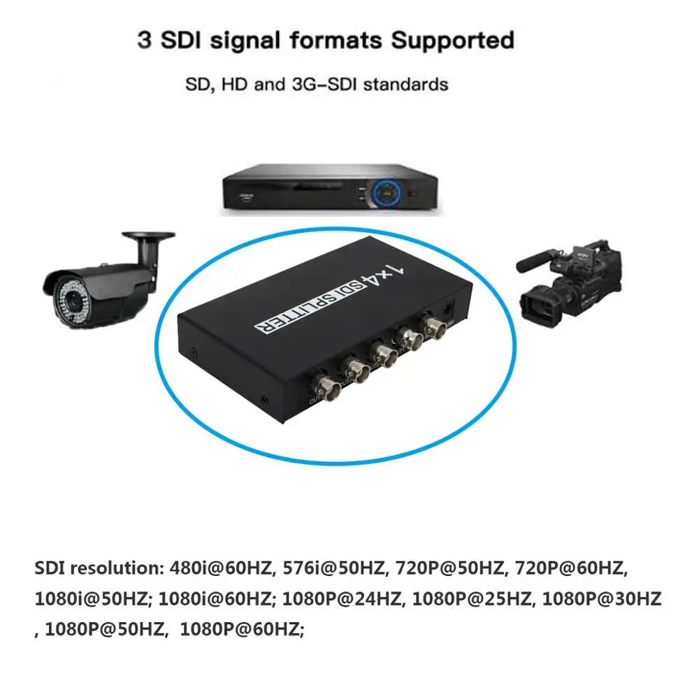 3. SDI стандарт: совместим с 3G-SDI,SMPTE 424M,HD-SDI SMPTE292M и SD-SDI SMPTE259-C