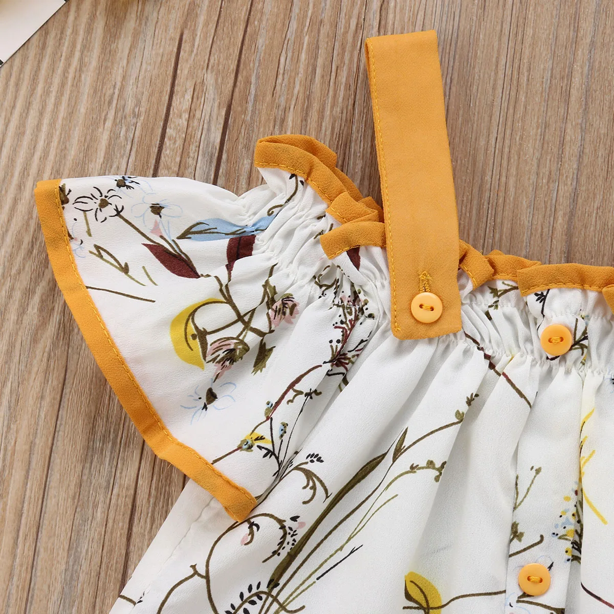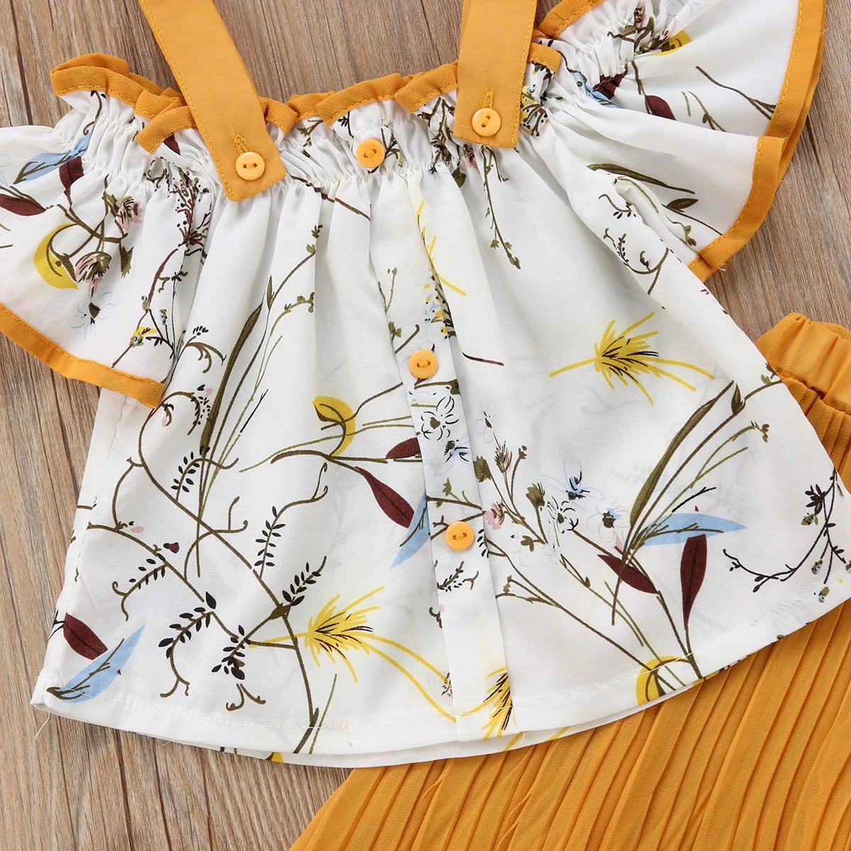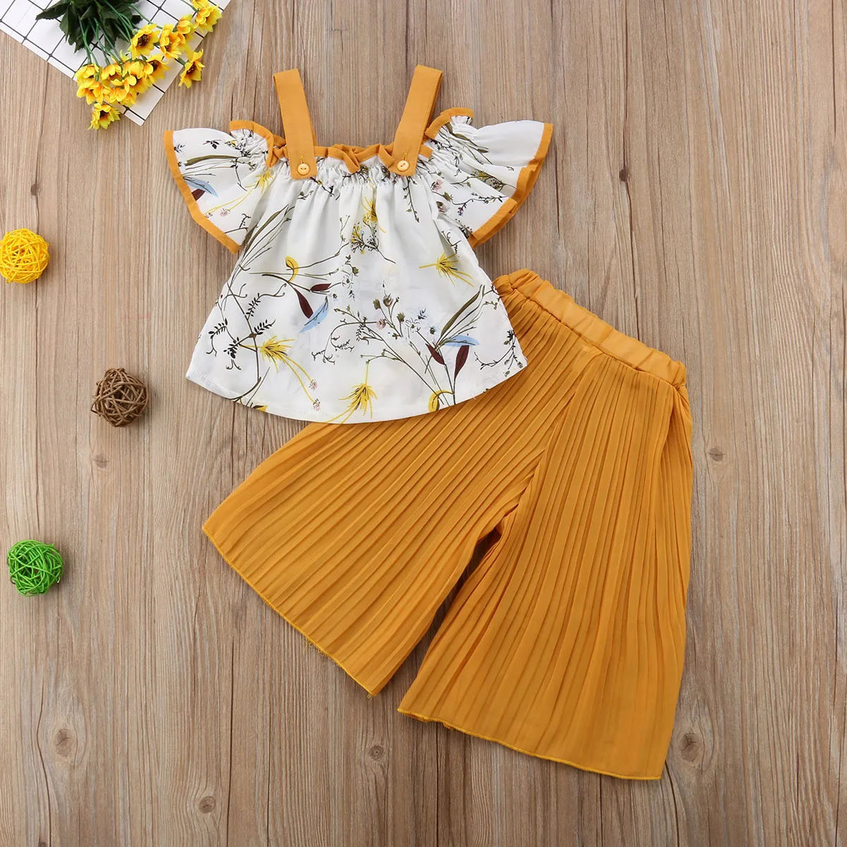 Комплект детской одежды из 2 предметов, топ на бретельках с цветочным принтом и открытыми плечами + свободные широкие штаны
