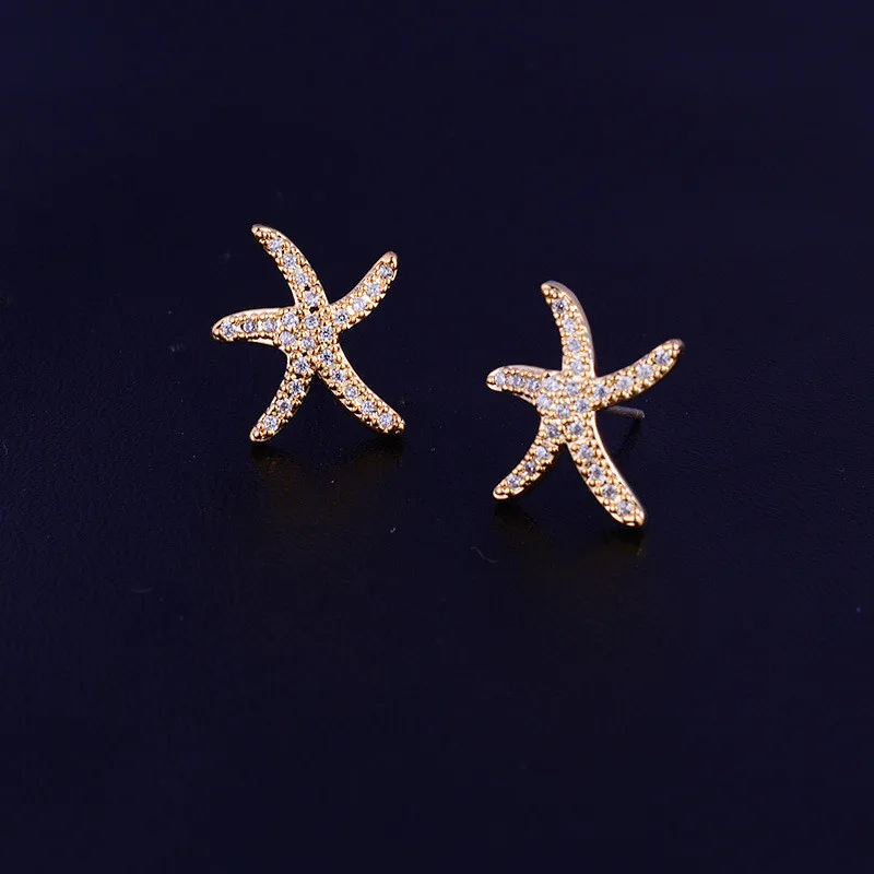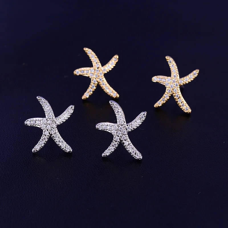 Модные женские серьги с морскими звездами и цирконием, минималистичные золотистые серьги-гвоздики, Классические свадебные серьги для женщин