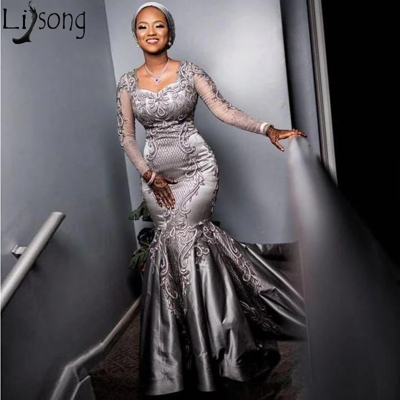 Серебристые пикантные 2021 Африканское вечернее платье детское платье силуэта русалка одежда с длинным рукавом платья для выпускного вечера дешевые официальная вечеринка и пышной многослойной юбкой; Нарядное вечернее платье