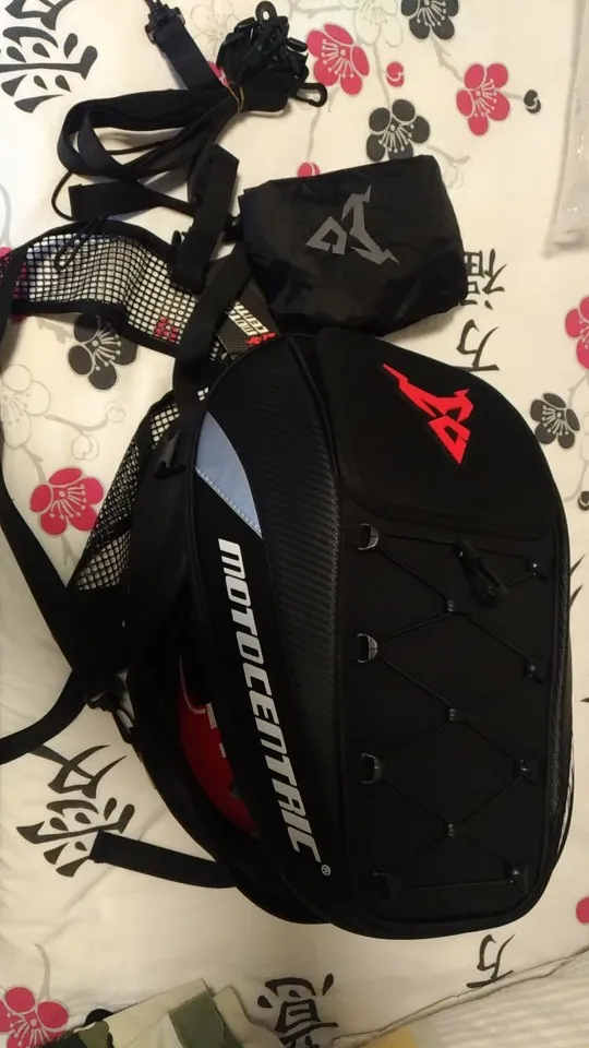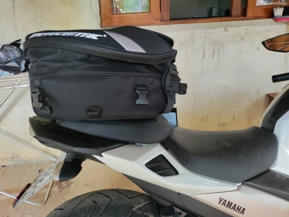 Absolutely awesome! Very compact-able, seems very high quality with a lot of adjustability, came with extra straps and waterproof covering (assuming this means the bag itself isn’t completely waterproof, but there is an internal lining). Easily fit my very small passenger seat (MT07). Colours and design are great and I really appreciate the reflective zones.