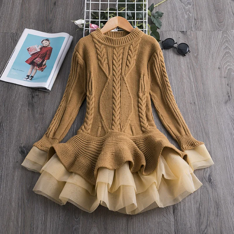 Рождественское зимнее осеннее платье для девочек, детская одежда, Детские платья для девочек, вечернее платье, вязаный свитер с длинным рукавом, платье для маленьких девочек
