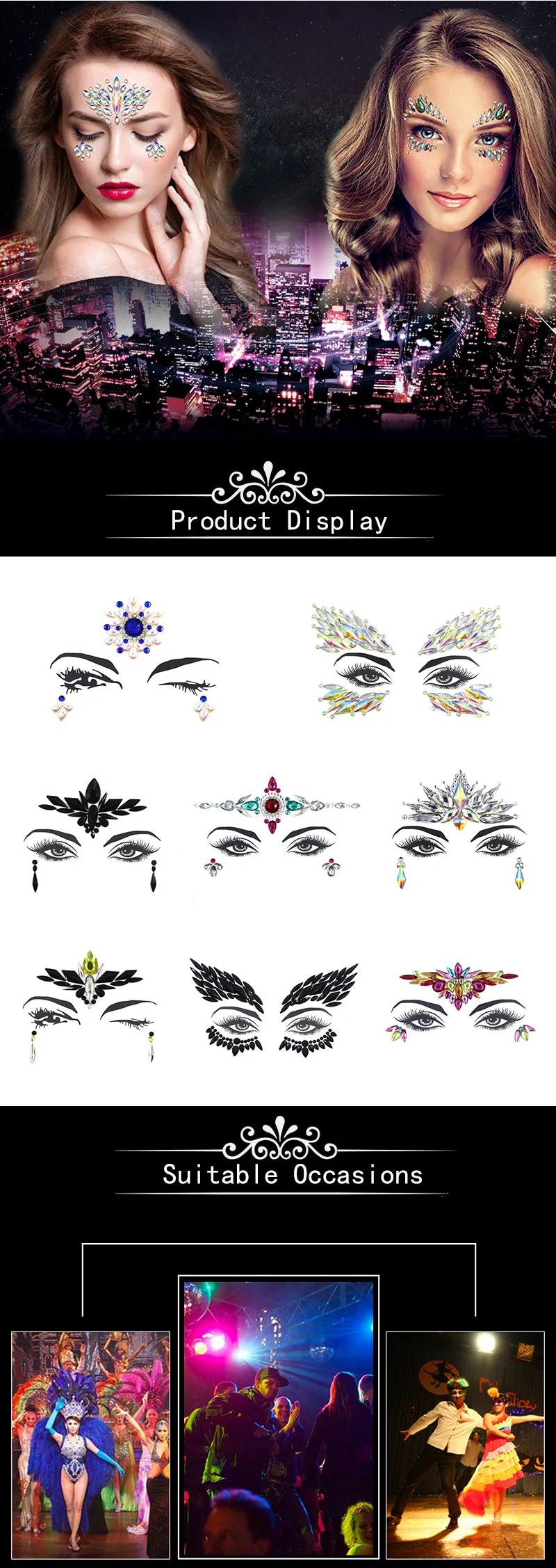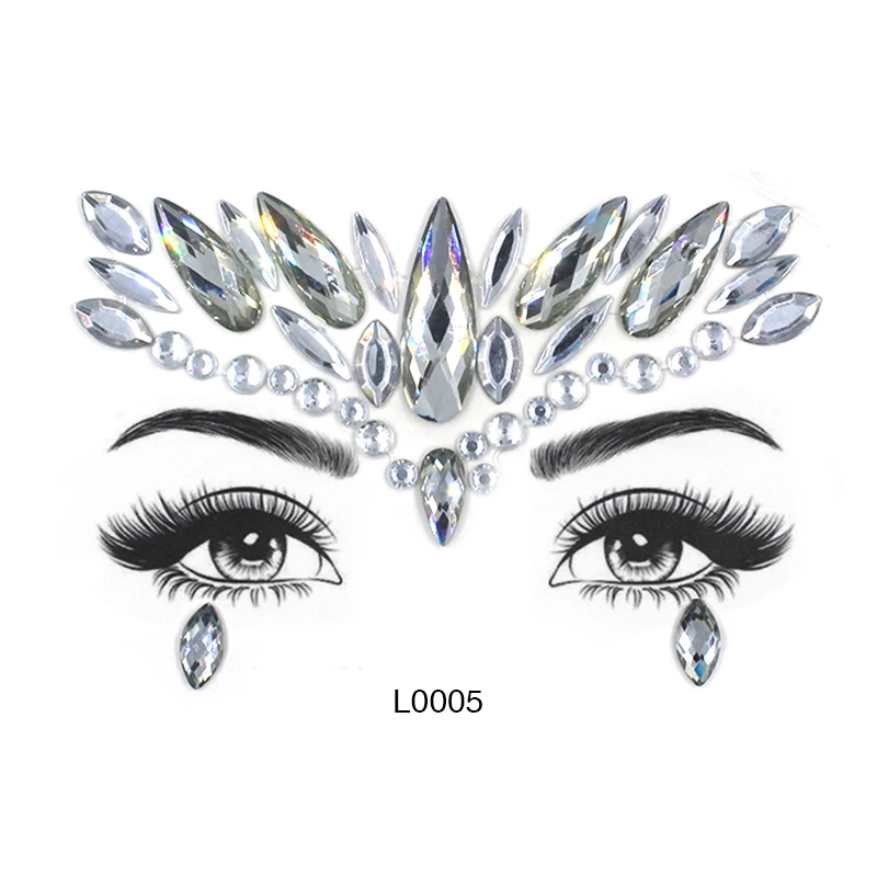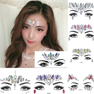 Женские Стикеры для лица 3D, модные наклейки для временного татуировки, боди-арта, самоцветы, стразы, наклейки для праздника Вечерние