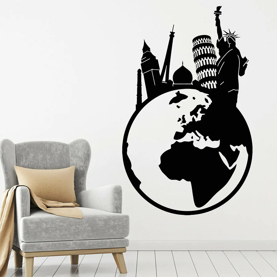 Наклейка на стену туристического агентства, Виниловая наклейка на окно для спальни, гостиной, дома, с Парижской башней, статуей свободы, S1060