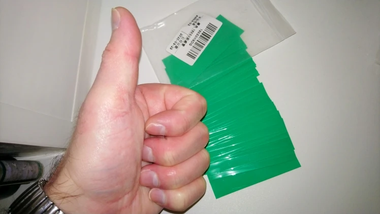 доставка 1.5 месяца, описанию соотв. нарезана на куски для акк. 18650. Сама термоусадка обычная фиговая, до этого брал другую пвх (зеленая на фото) но метражом, так вот она чуть толще и усаживается ровней, а на этой сплошные волны (усаживал феном)