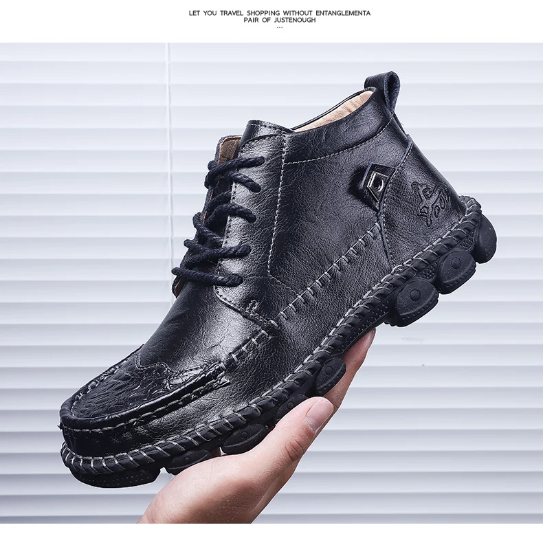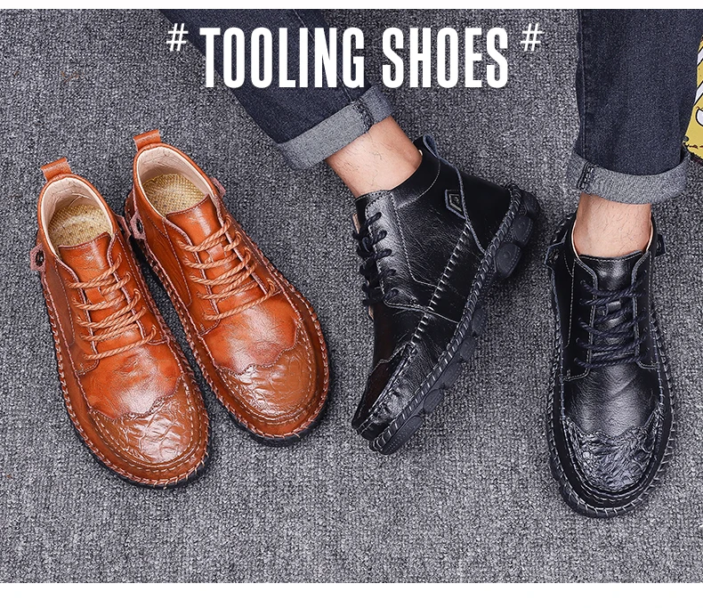 Мужские кожаные ботильоны на шнуровке, мужская обувь, высококачественные винтажные британские военные ботинки, осенне-зимние размера плюс 38-48