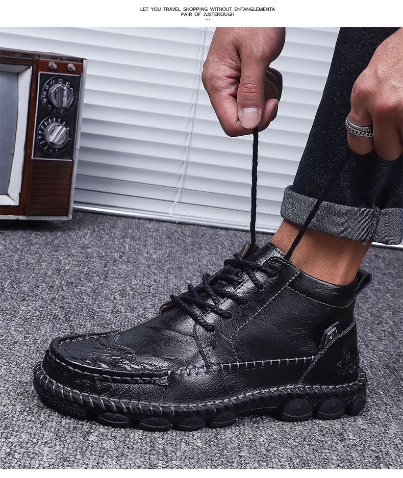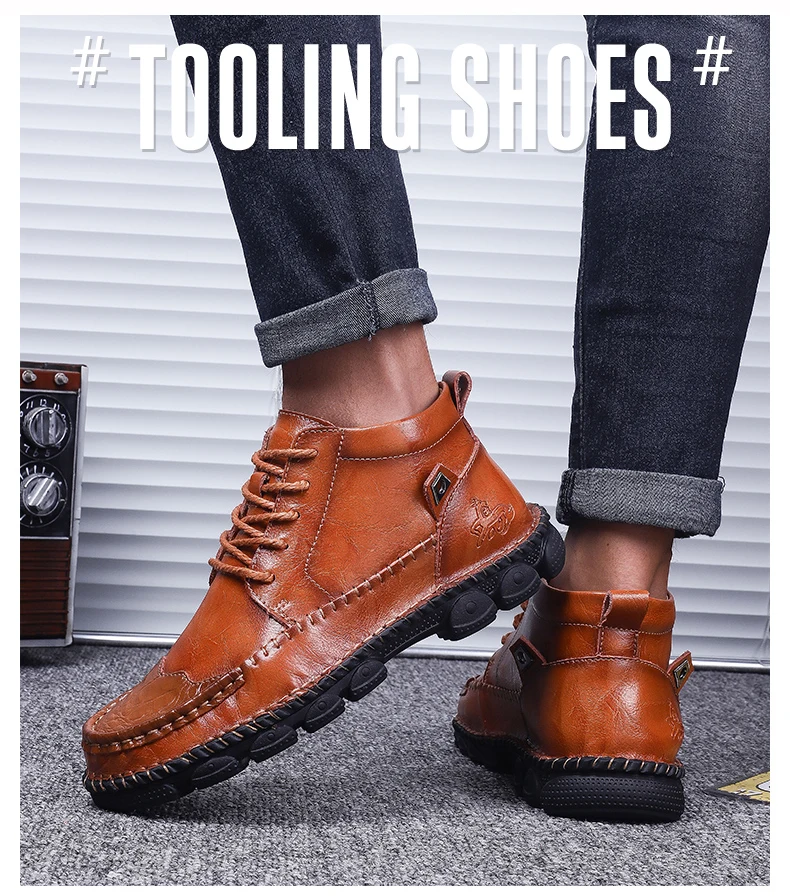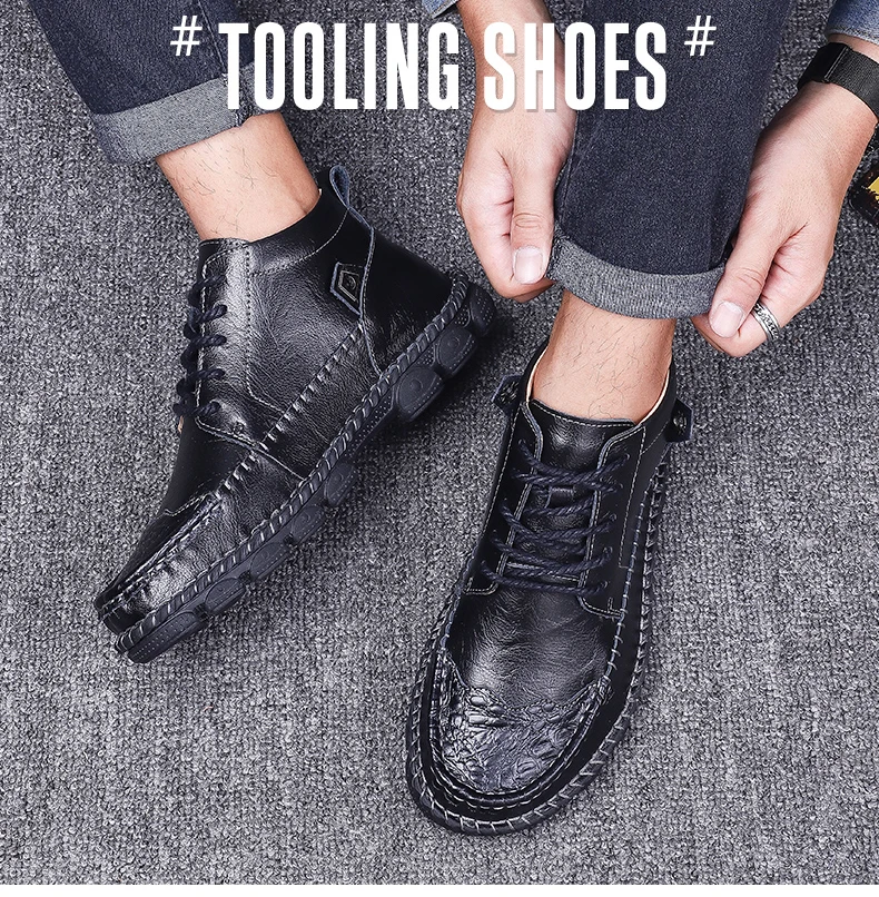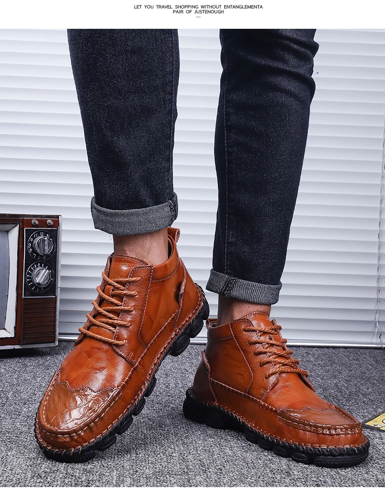 Мужские кожаные ботинки ручной работы; Модные ботильоны ручной рабо...