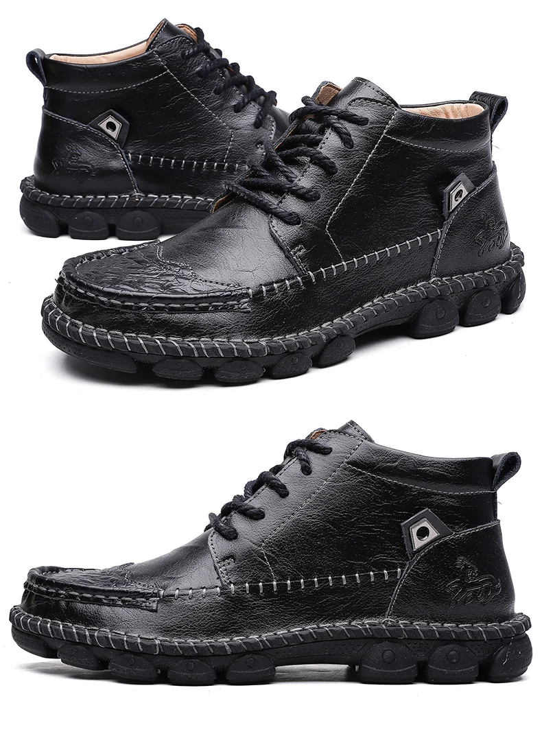Мужские кожаные ботинки, удобные мотоциклетные рабочие ботинки, рез...