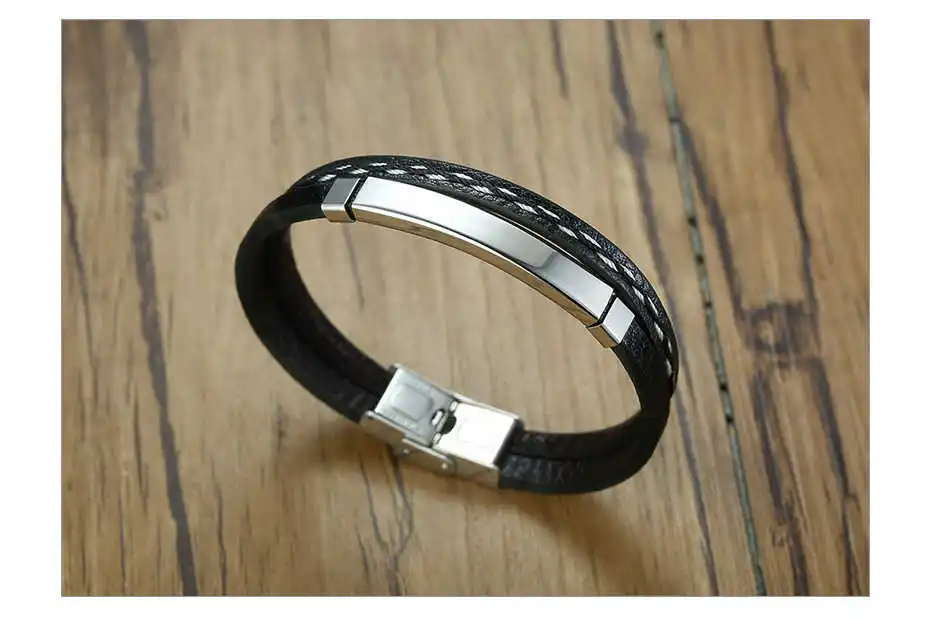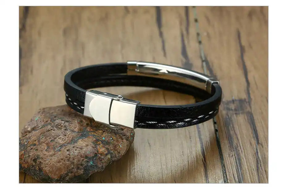 Многослойные кожаные браслеты Vnox для мужчин и женщин, индивидуальный Повседневный персонализированный браслет из нержавеющей стали с гравировкой