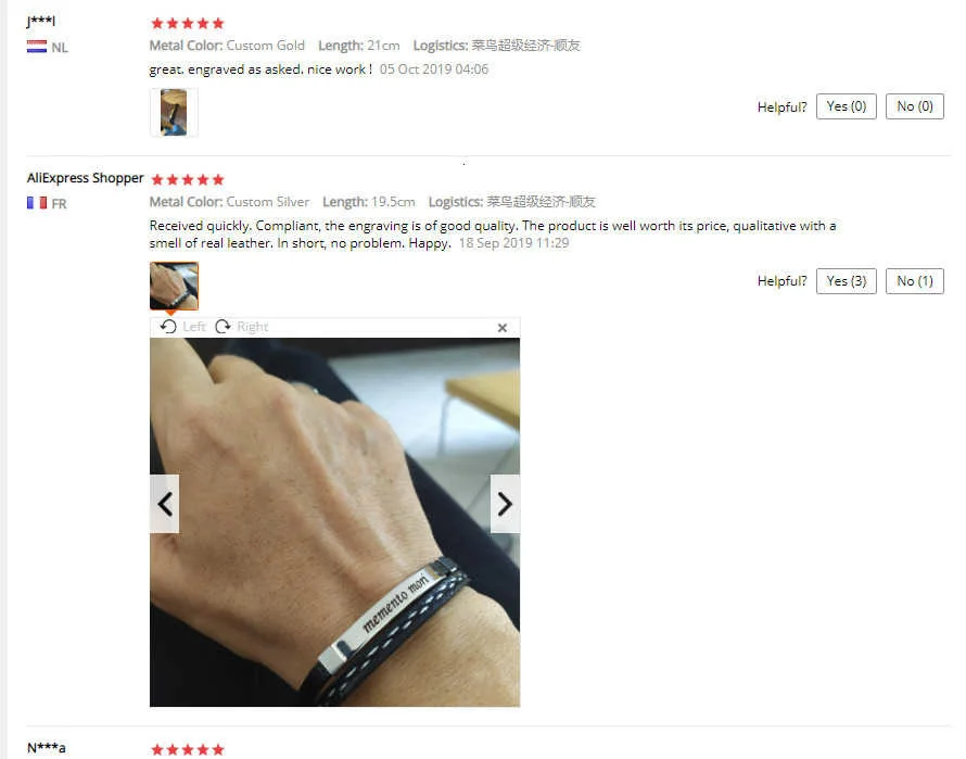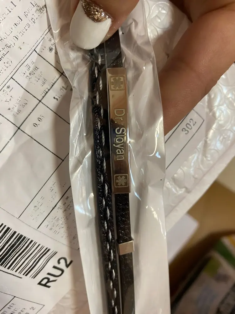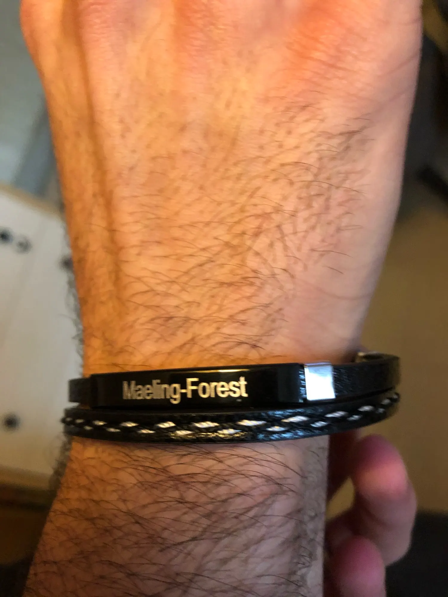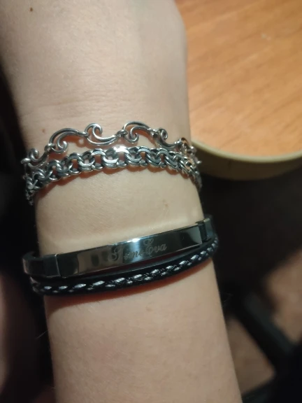Я очень доволен, я отправил фотографию, и они выгравированы идентично. Браслет высокого качества, застежки простые, его можно укоротить, внешний вид браслета можно изменить, все. Я рекомендую вам всегда брать больше времени, поэтому порежьте его самостоятельно.