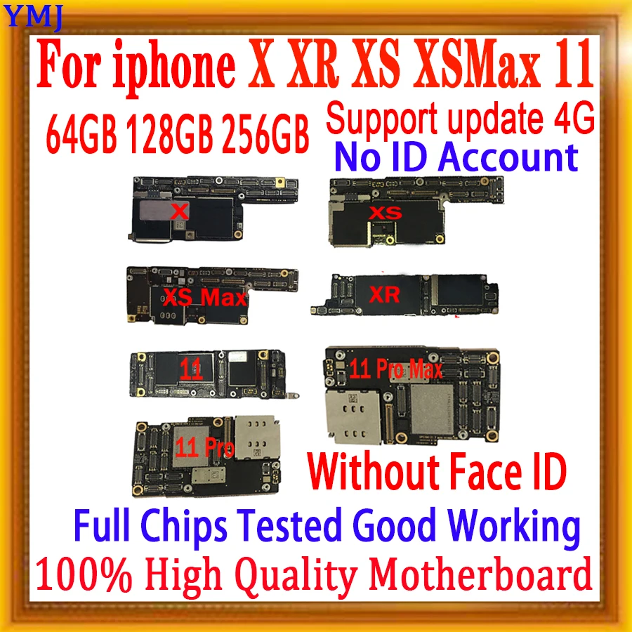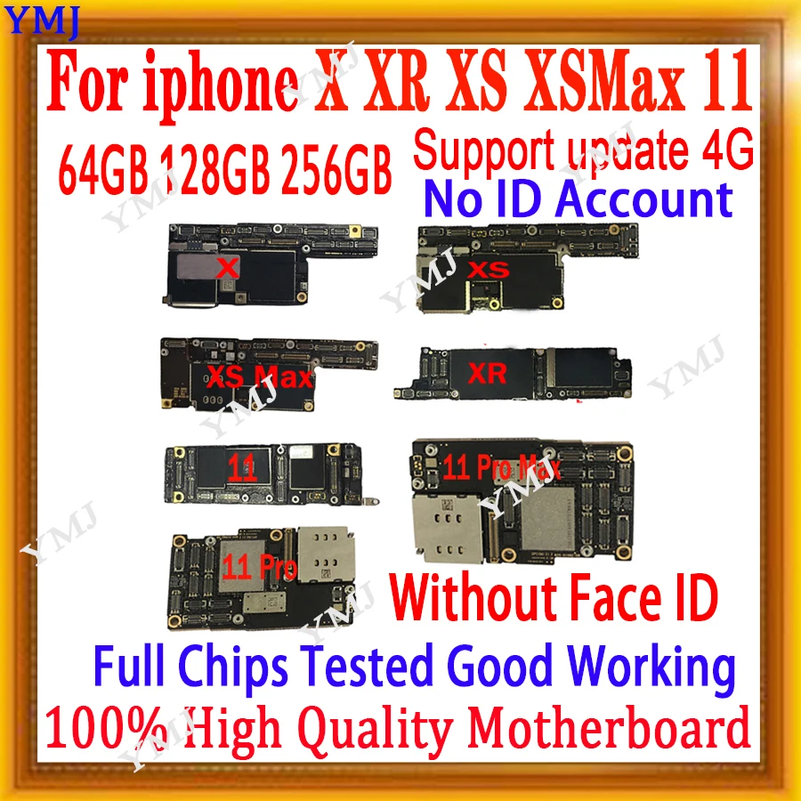Материнская плата для iPhone X XS XR XS Max 11 11 Pro 11 Pro Max, без Face ID, с полными чипами, основная плата 100% протестирована, без идентификационной учетной записи