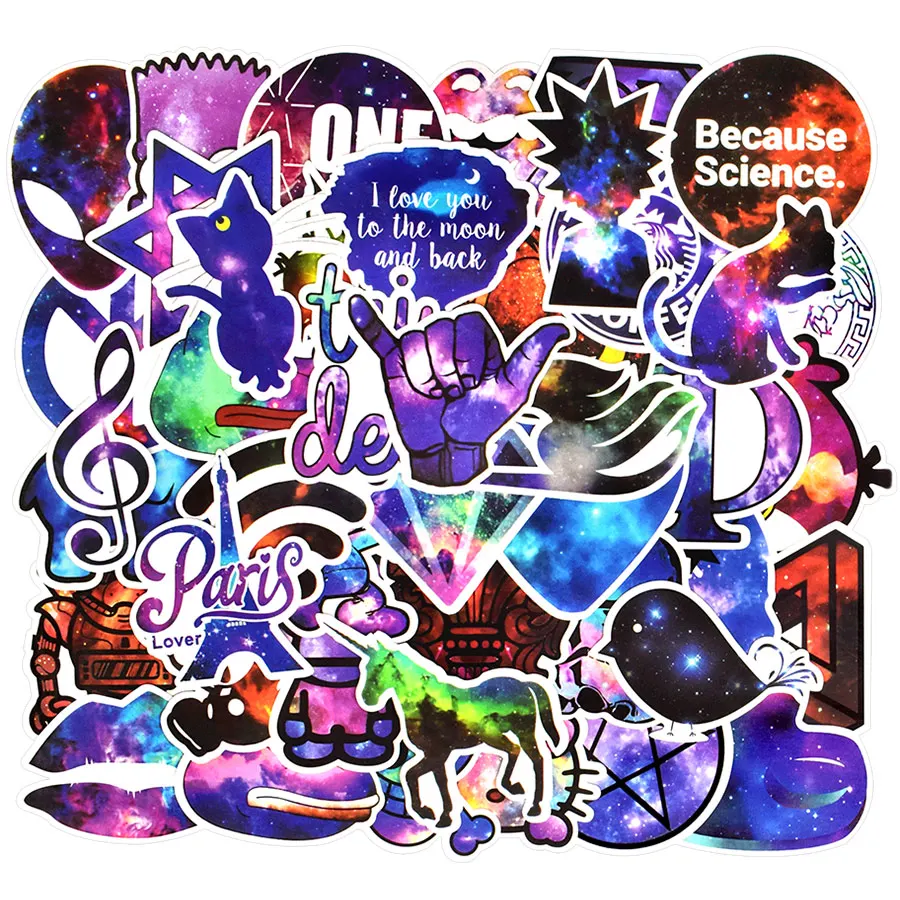 50 шт., галактика, аниме, наклейки, животные, мультфильм, Мерцающая звезда, забавная JDM наклейка, детские игрушки, сделай сам, скейтборд, гитара, ноутбук, автомобильный стикер