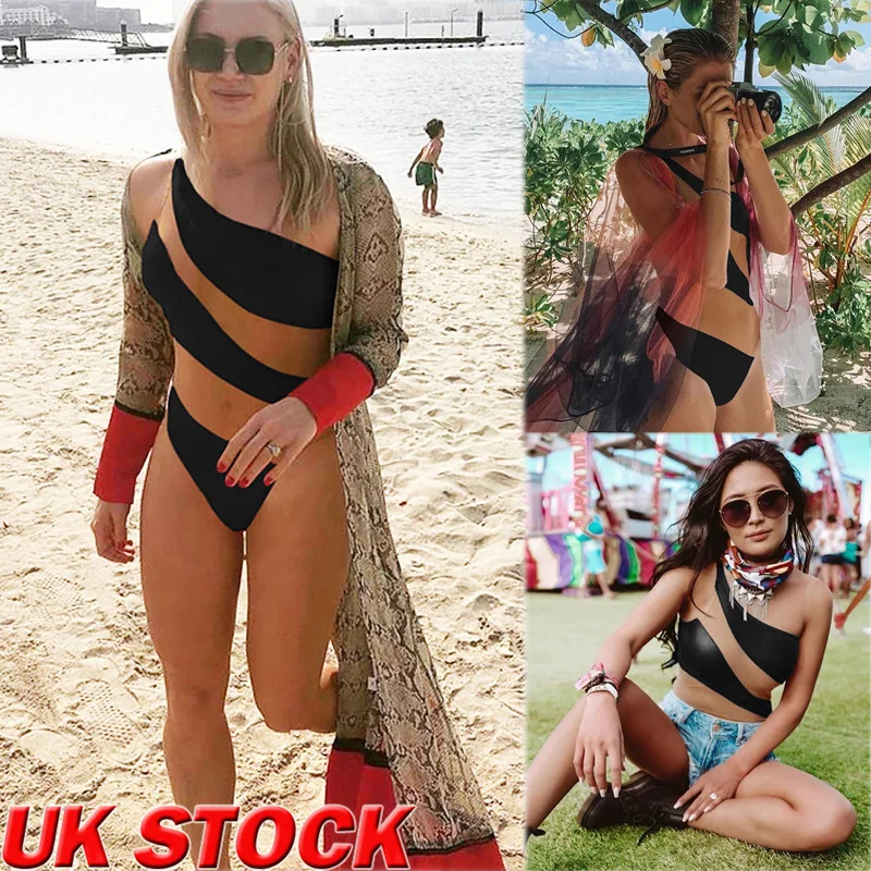 Сексуальный слитный купальник в полоску на одно плечо, женский купа...