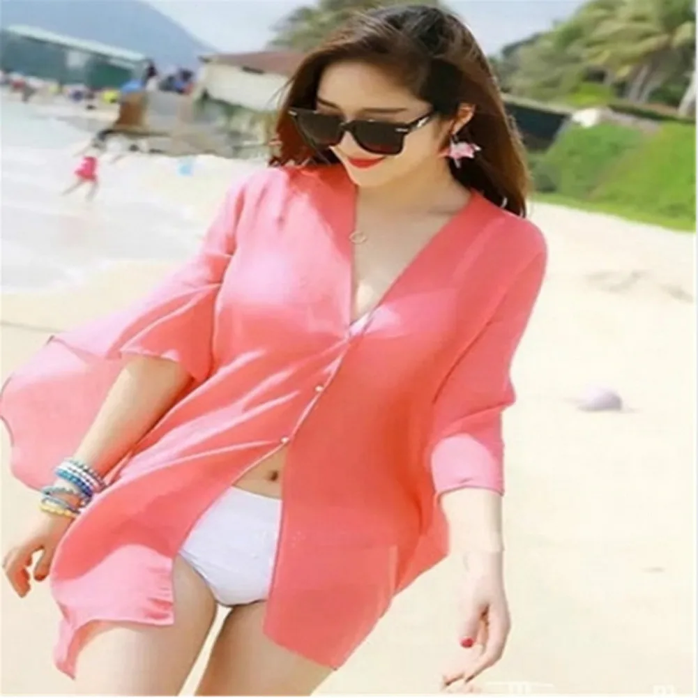 Женская сексуальная шифоновая накидка на бикини, сексуальная летняя...