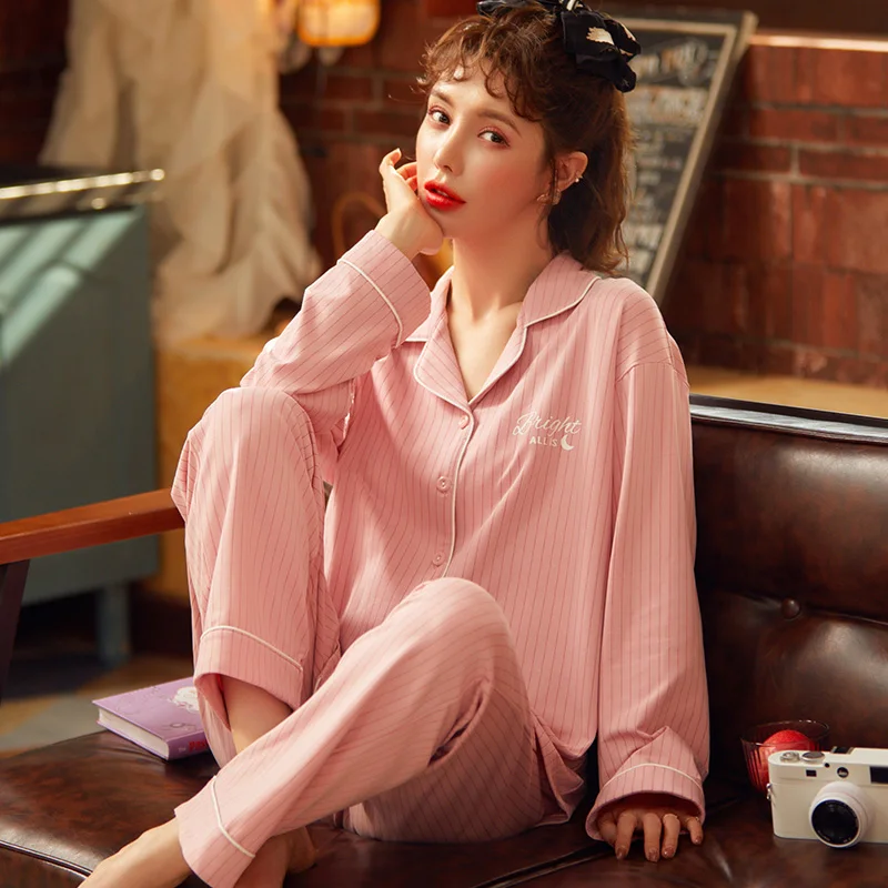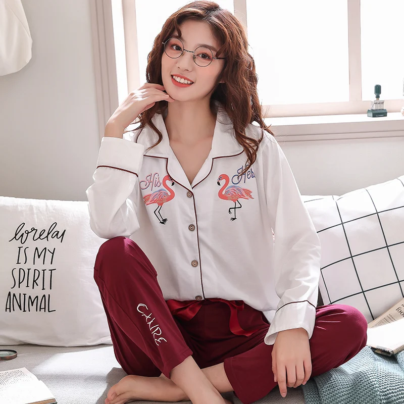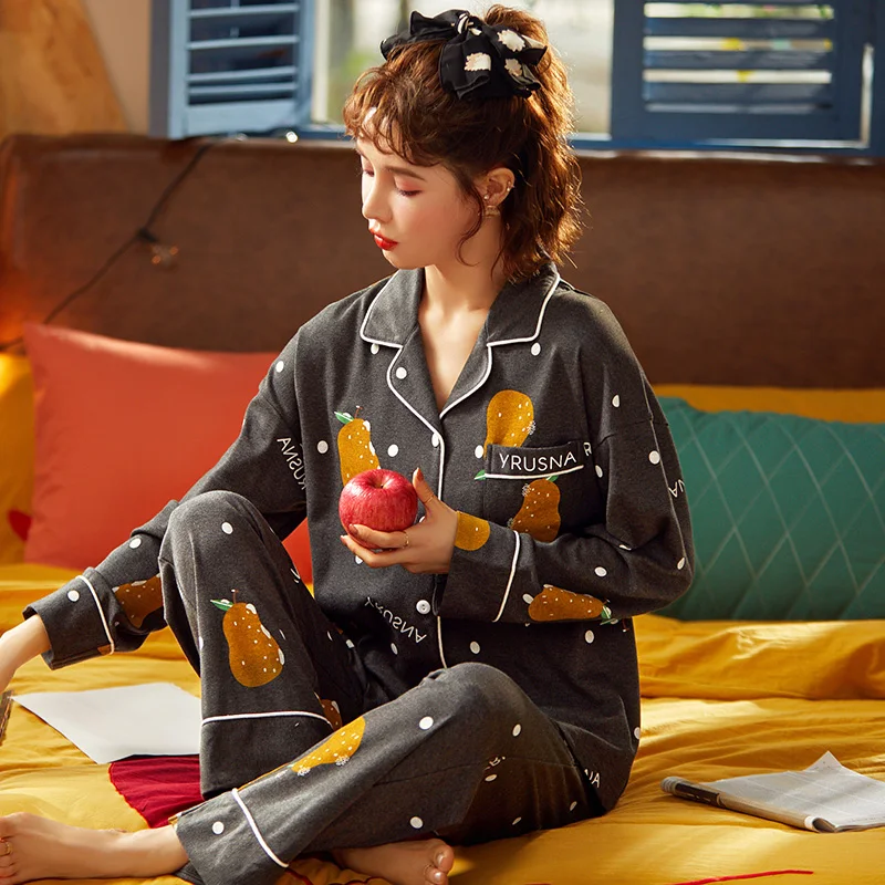 Пижама женская из хлопка, с отложным воротником, Осень-зима