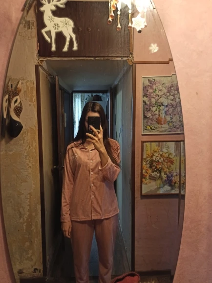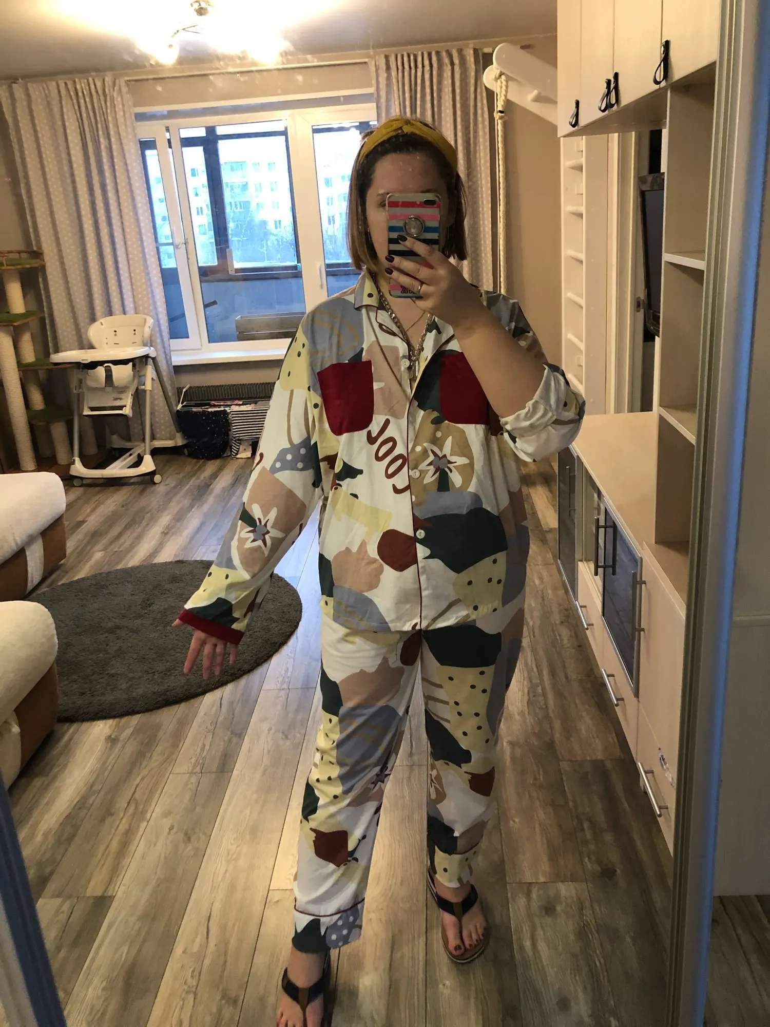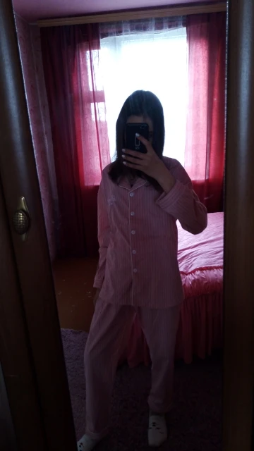 Очень крутая пижама! Свободная, мягкая, очень приятно ходить в ней по дому и спать, вылезать не хочется ^^ Строчки все ровные, после стирки с пижамой все ОК, свою мягкость не утратила) Размер брала побольше, чтобы нигде не обтягивало. Рукава оказались длинноваты, но подвернуть не проблема. Мой рост 169см, ог 98см, об 106см. От меня огромный рекомендасьон! Продавцу спасибо!