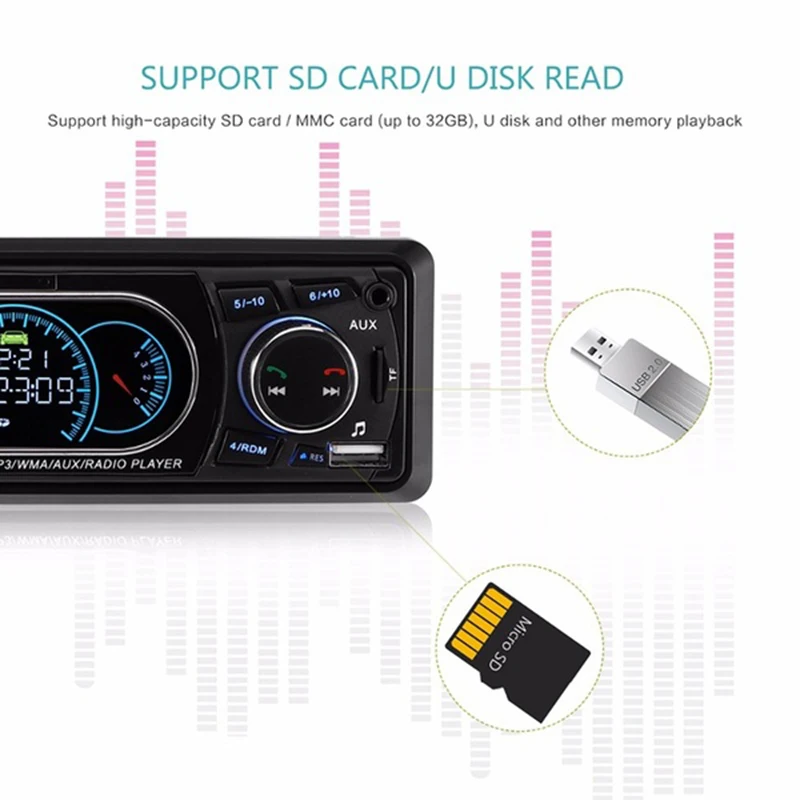 Автомагнитола 1 Din с Bluetooth, автомобильный стерео MP3-плеер, USBFM-приемник с беспроводным пультом дистанционного управления, 60 Вт * 4