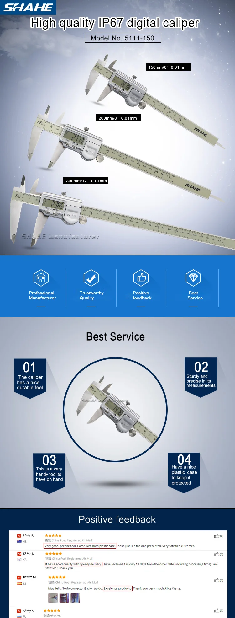 1.Водонепроницаемый IP67, закаленная Нержавеющая Сталь Основные весы и измерительные челюсти