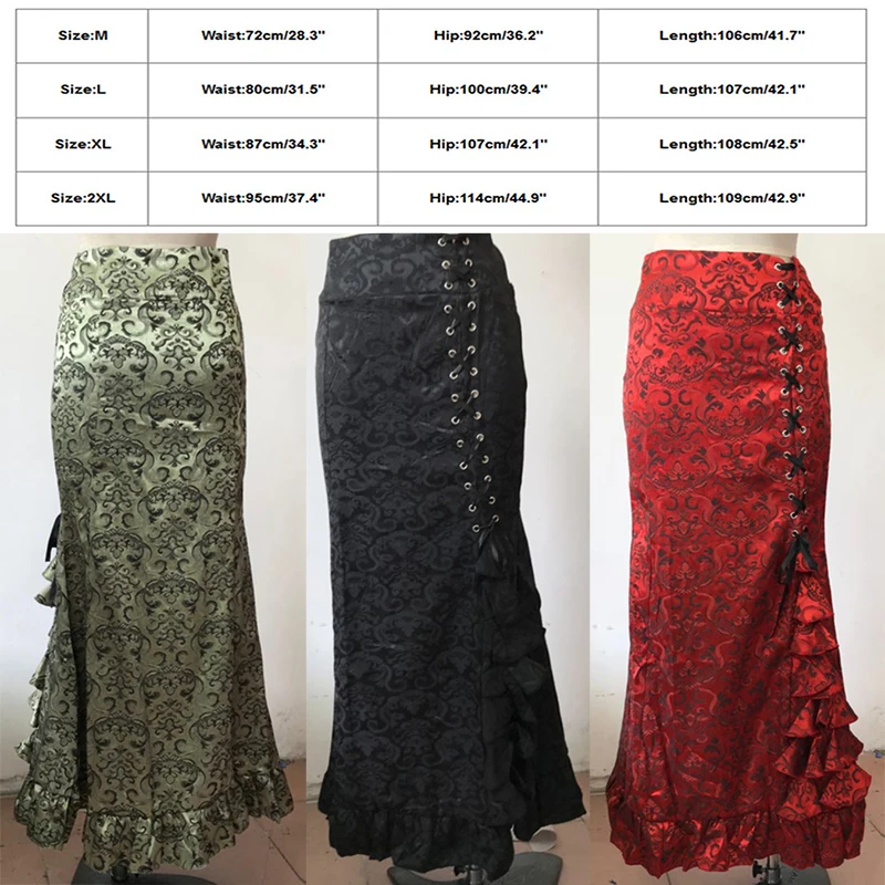 Женская юбка русалка в стиле панк, винтажная длинная облегающая юбка-готика в стиле стимпанк, юбка-готика с оборками, 2021