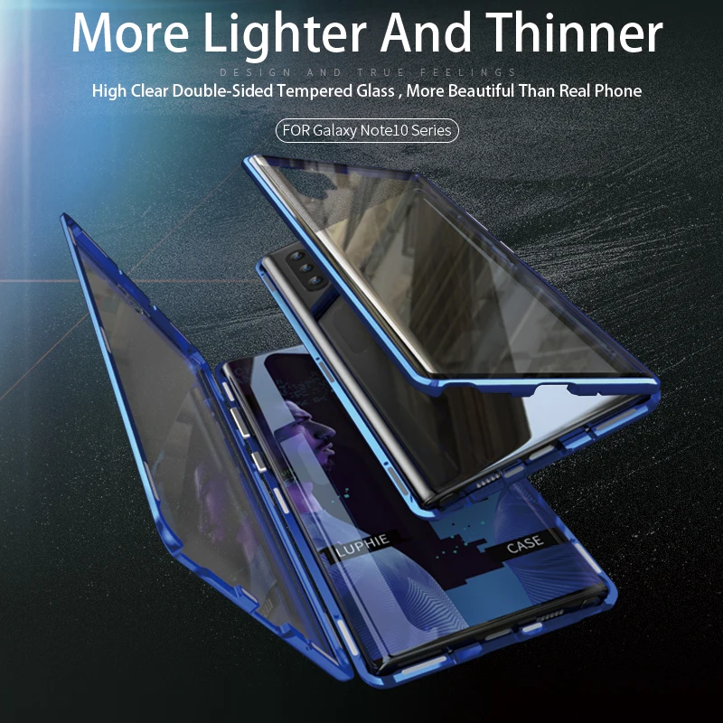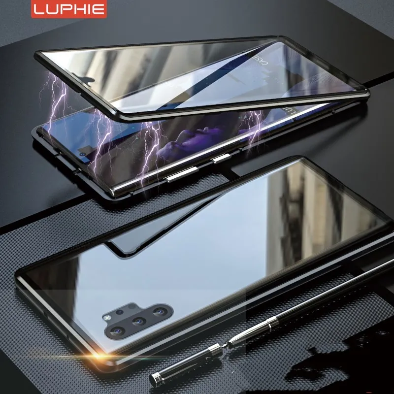 Роскошный чехол Luphie 360 с магнитным передним и задним стеклом, двухсторонний стеклянный чехол для Samsung Galaxy Note 10 Pro Note10 + Магнитный откидной Чехол