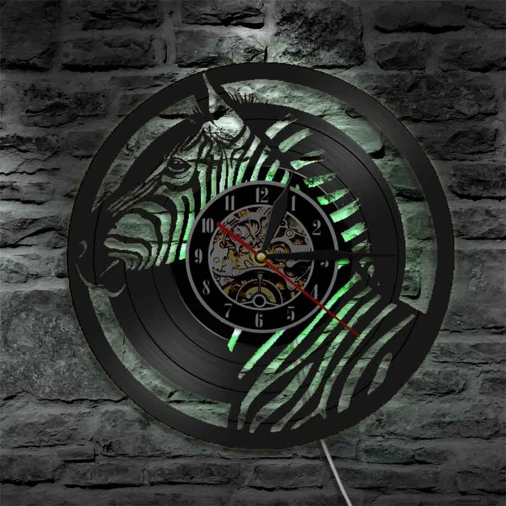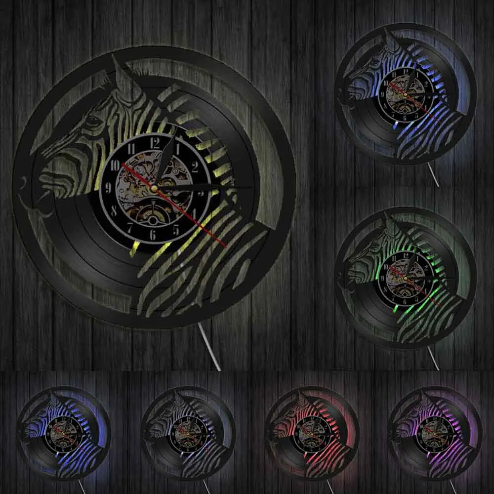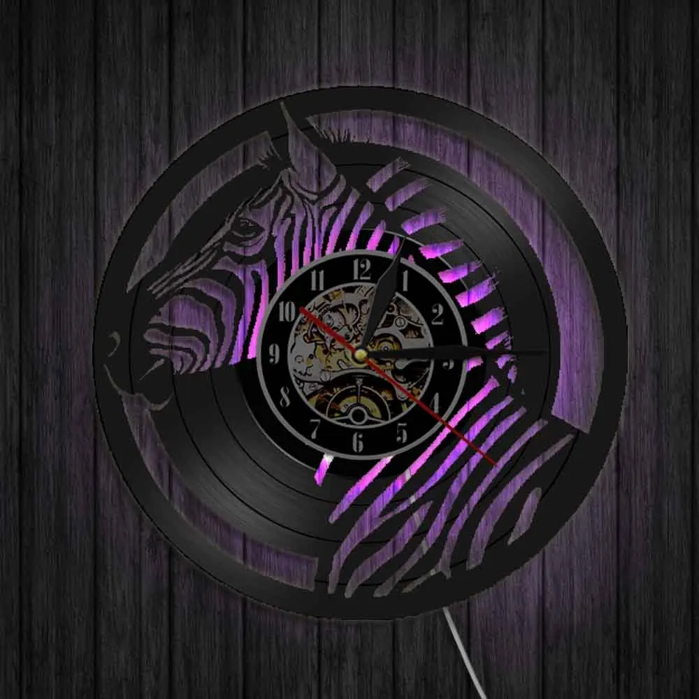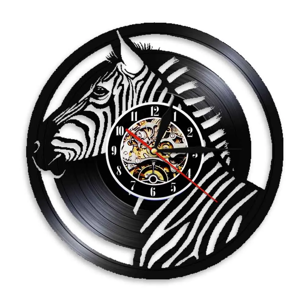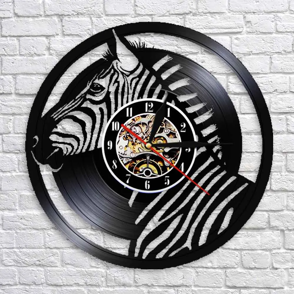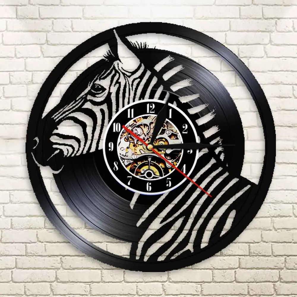 Черно-белые настенные часы в виде зебры с виниловой пластиной для гостиной, минималистичный домашний декор, дикие животные, бесшумные кварцевые часы, часы