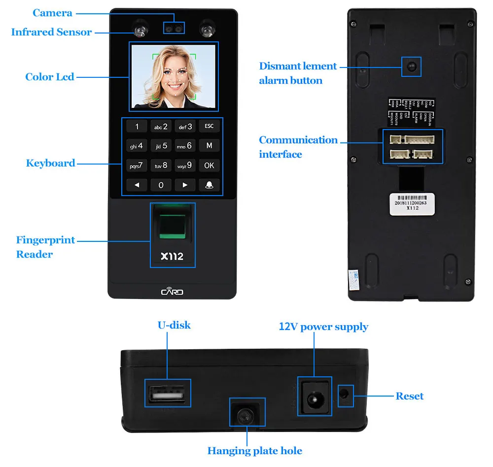 1 x X112-K отпечаток пальца на лице машина распознавания