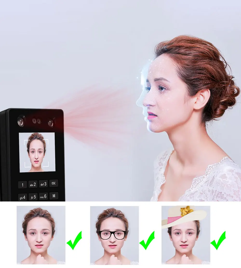 Это устройство не только препятствует использованию сотрудниками фото или видео посещаемости, но и интеллектуально распознает изменения в вашем внешнем виде. Даже при макияже, шляпе или очках эта машинка может быстро и точно распознавать лица. Экономьте время и Повышайте эффективность.