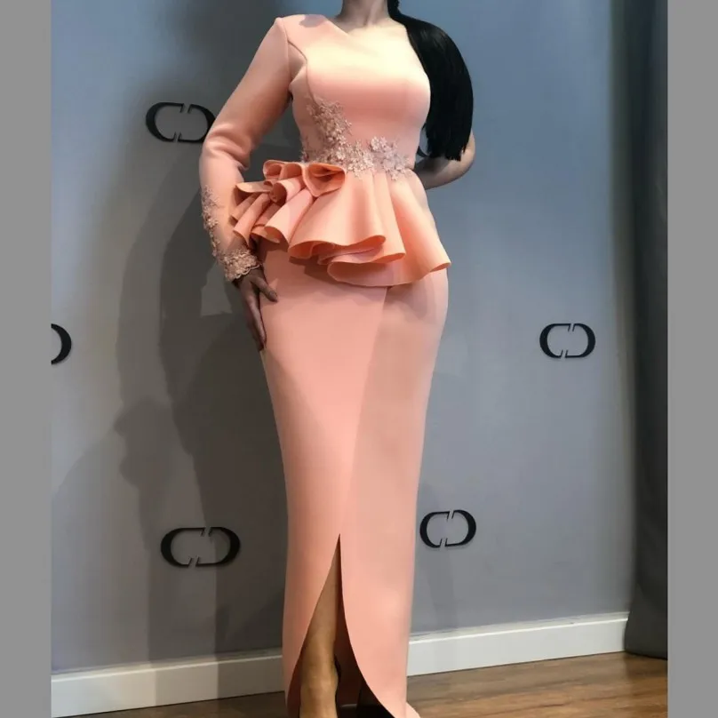 В африканском стиле; Вечерние платья на одно плечо с кружевной аппликацией баска Русалка платье для выпускного вечера спереди Разделение атласная размера плюс вечерние платья Vestidos