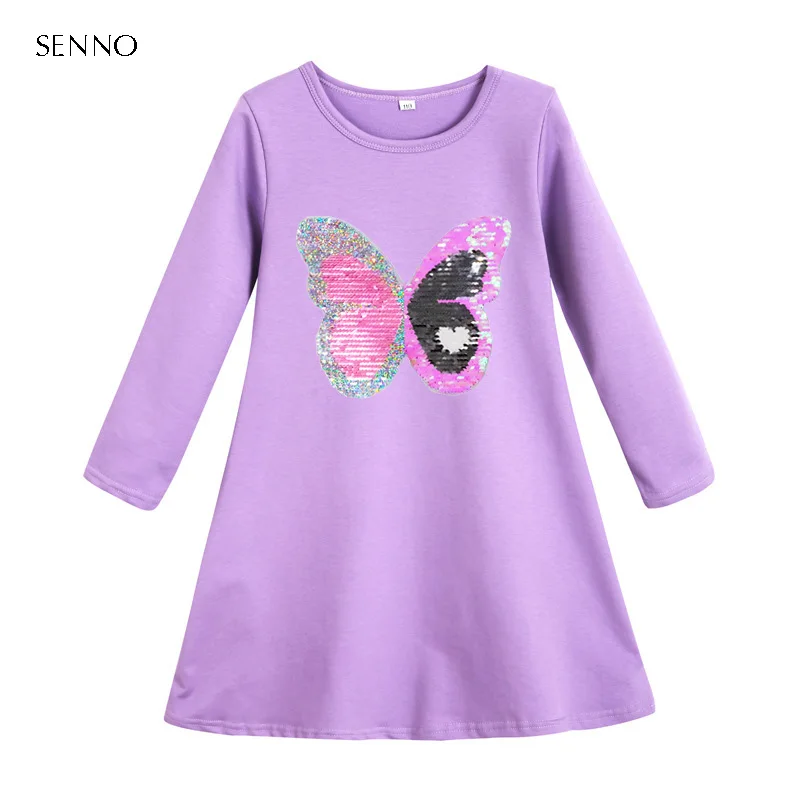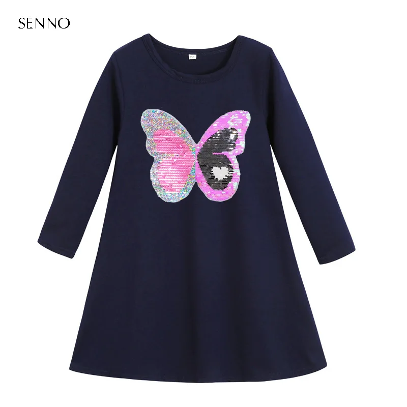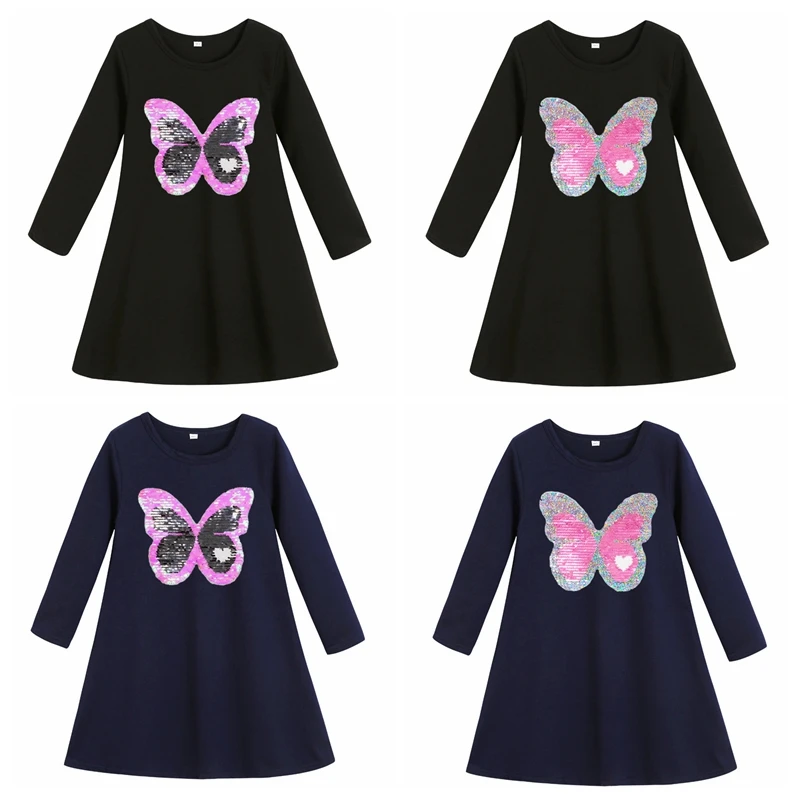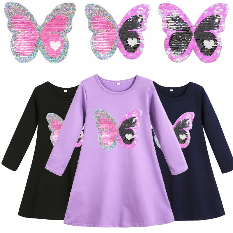 Весенне-осеннее платье для девочек с двусторонними блестками, детская одежда, модные хлопковые блестящие платья для девочек, платье для мамы и дочки
