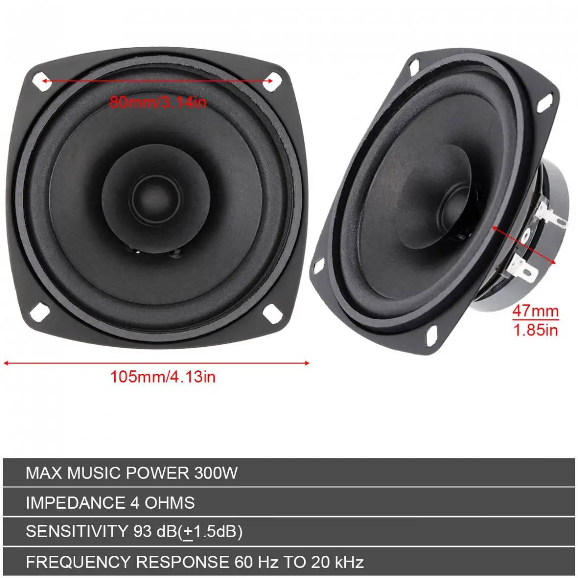 1 шт., автомобильный коаксиальный динамик, 12 В, 4 дюйма, 300 Вт