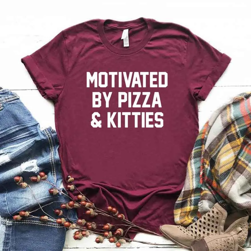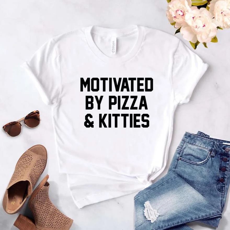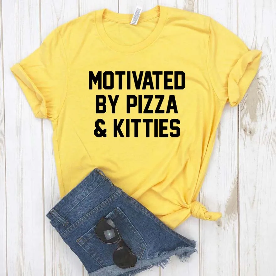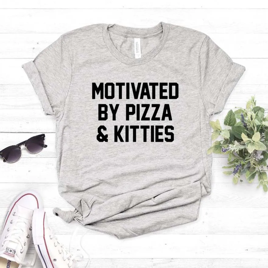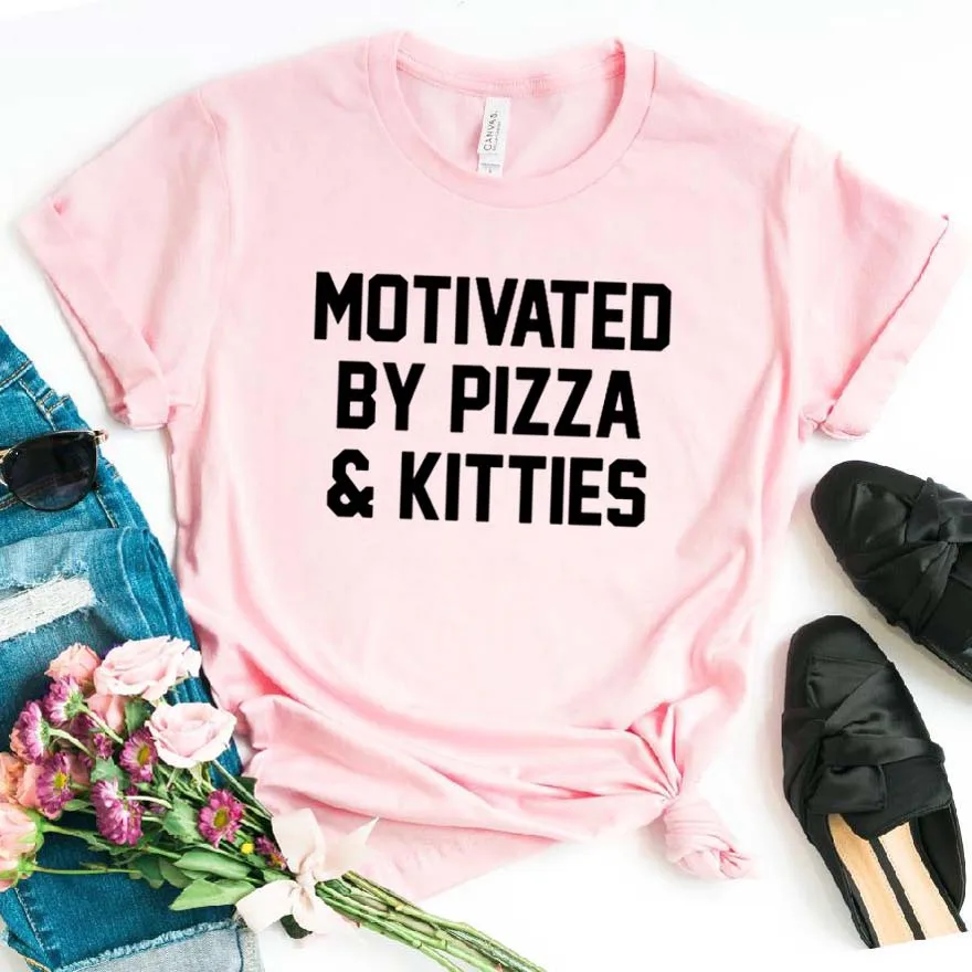 По мотивам пиццы и кошечки с принтом, женская футболка, хлопок, свободный покрой, забавная футболка для Yong, для девушек и женщин, выполнено из верхний тройник битник Прямая поставка NA-383