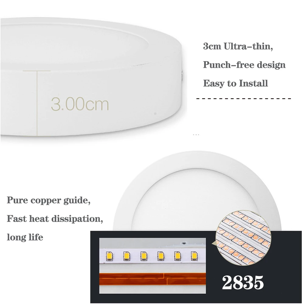Светодиодный потолочный светильник AC85-265 в, ультратонкие современные потолочные светильники 6 Вт 12 Вт 18 Вт 24 Вт, светодиодные панели, светильник вые Водонепроницаемые светодиодные точесветильник льники