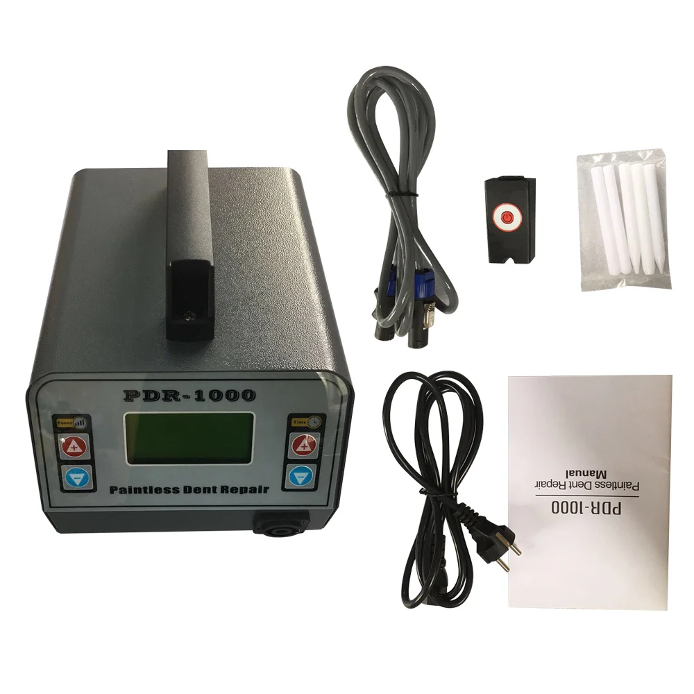 Параметры изделия Название продукта: Автомобильный инструмент для ремонта вмятин без покраски Модель: PDR-01/PDR-02/PDR-03 Цвет: черный/серый/синий Напряжение питания: 110/220 В (в) Размер: 22*17*16 (см) Вес: 2600 г Тип: Мобильное портативное магнитное Индукционное устройство использование: для листового металла (усадочного и растягивающегося металла) ремонт вмятин, Ремонт без следов, отсутствие повреждений для ремонта краски, плавное провисание автомобиля, такие как функции ремонта ледяного кратера, удаляют неокрашенные вмятины с панели с быстрым концентрированным нагревом. Блок также может использоваться для усадки растянутого металла. Мобильное портативное магнитное Индукционное устройство простое в использовании, любой работник с металлическим фоном может освоить его за три минуты. Закрепите мягкую вмятину на металлической поверхности в течение 30 секунд. Точный контроль и мониторинг прогресса в реальном времени. Режим управления питанием: рекомендуется фиксировать светильник кие вмятины. Блок питания может быть предустановлен от 20% до 100%. С помощью режима управления питанием время работы можно регулировать включением/выключением на сервисной ручке. Примечание: 1. Замеры сделаны вручную, поэтому возможны отклонения на 1-5 мм. 2. Разница светильник и экраном, цвет проекта может быть светильник, сильно отличающийся от изображения. Упаковочный лист 1 x инструмент для ремонта вмятин без покраски автомобиля 1 x основной кабель 1 x шнур питания 1 x сервисная ручка 1 x Руководство по эксплуатации 1x5 шт./инструменты для выбивания