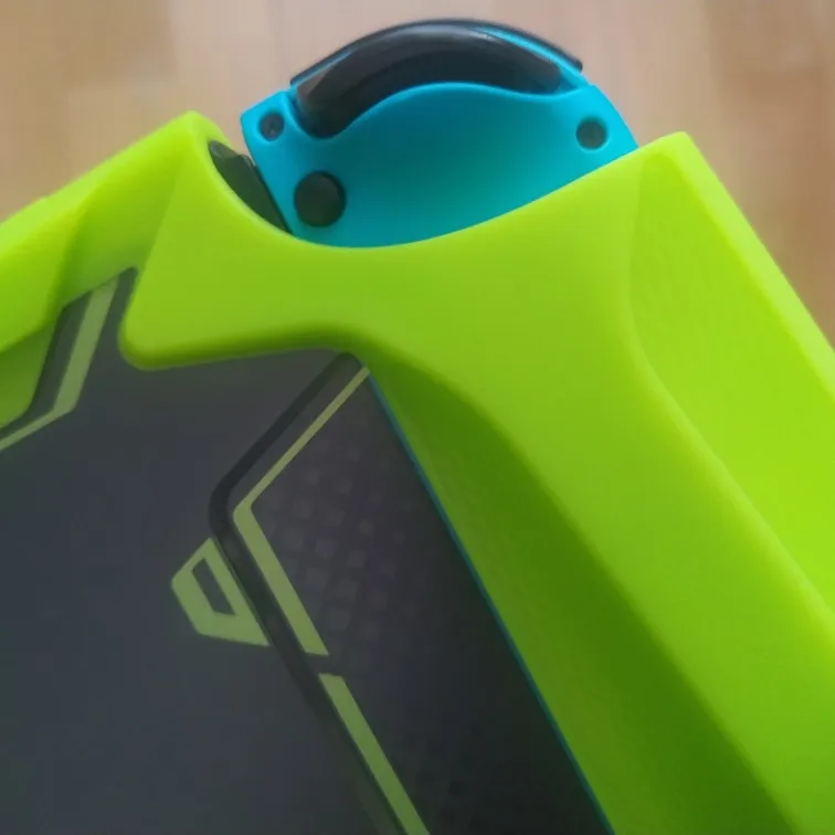 Красивый чехол и удобная ручка. Joy-Cons выход и легкий выход. Установка док-станции является правильной, но не требует силы. Звуковые входы и картридж имеют отверстия, но поддержка задней/карты памяти заблокированы. Прибыл очень быстро :)