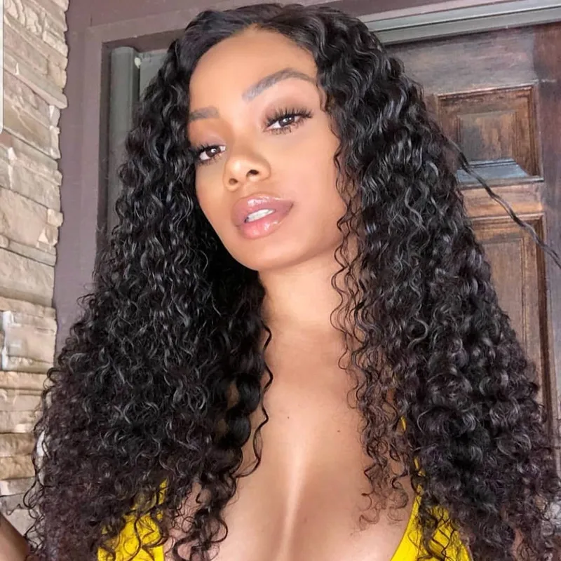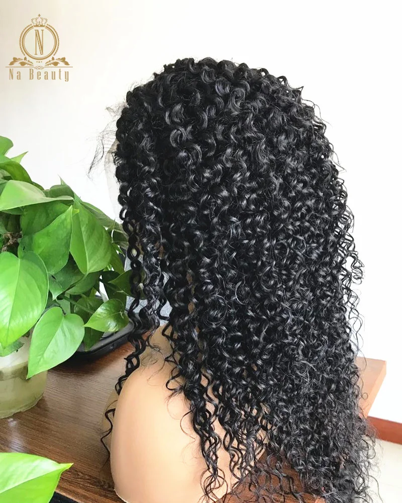 Парик из кудрявых натуральных волос, 360, с детскими волосами, 13x4, черный, для женщин