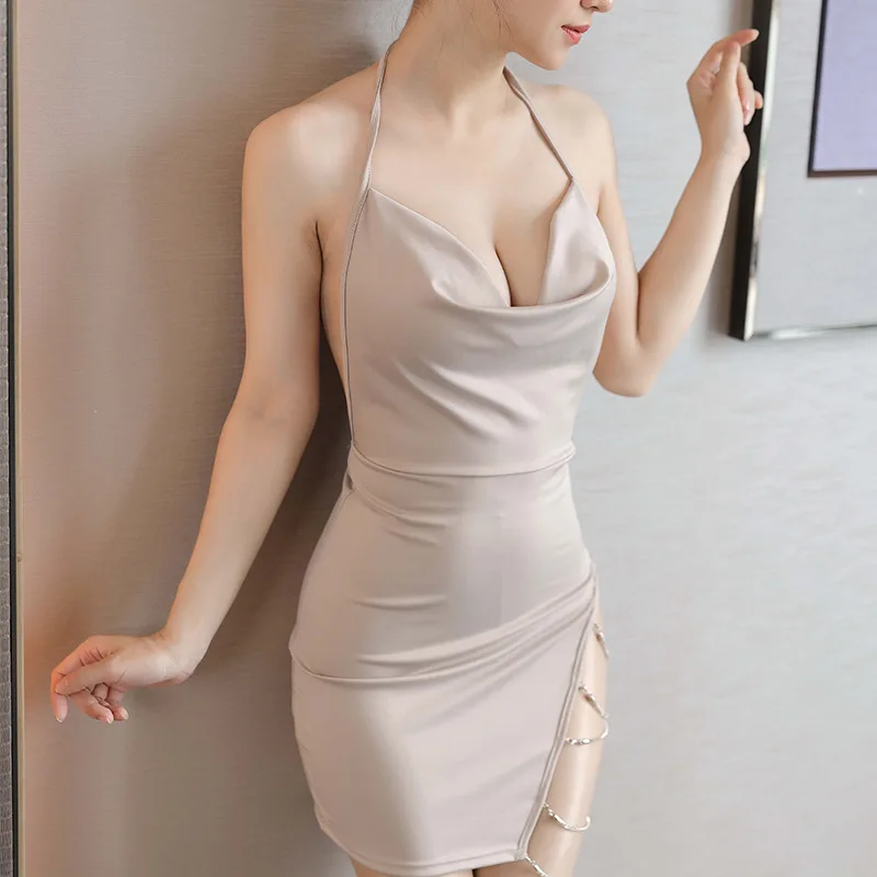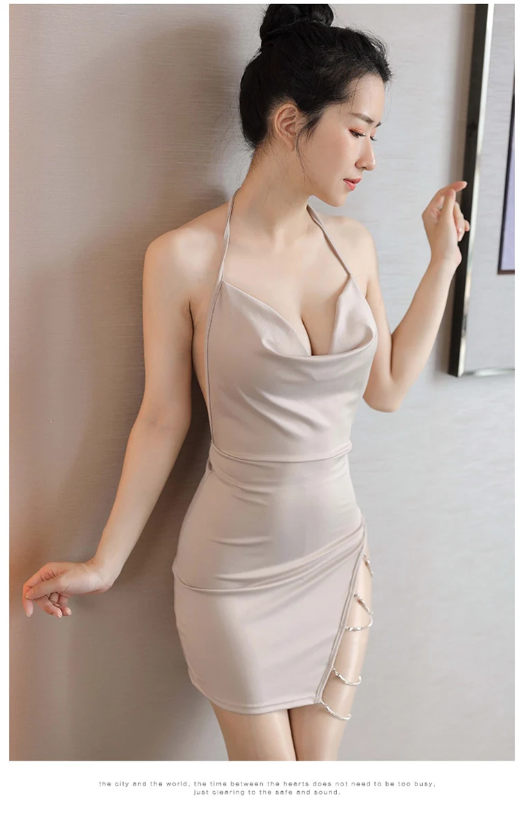 Сексуальное короткое платье-мусс с глубоким v-образным вырезом и открытой спиной, сексуальная женская одежда для сна, вечерняя юбка для молодых девушек, раздельная юбка размера плюс, нижнее белье