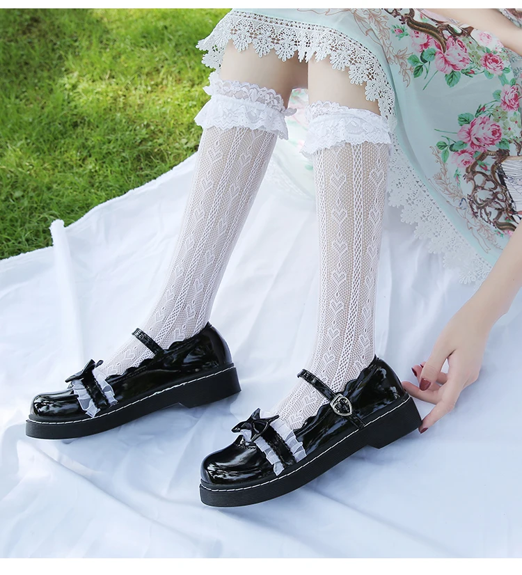 Милые туфли в стиле Лолиты; Обувь для девочек; Обувь для учащихся; Розовые туфли из искусственной кожи с кружевным бантом; Туфли Mary Jane на низком каблуке с круглым носком