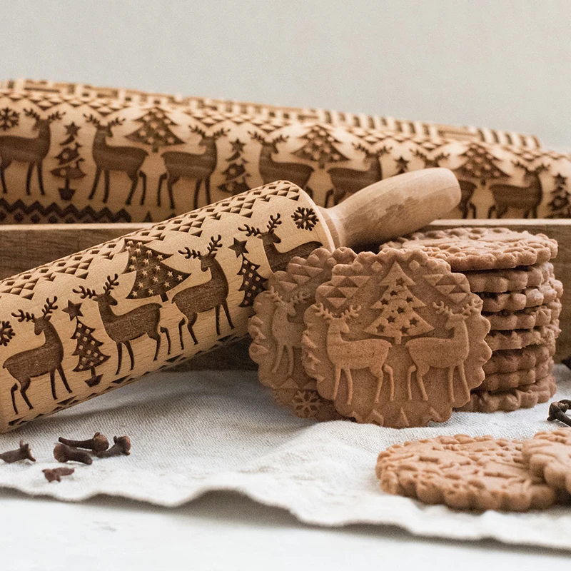 Скалка для рождественского тиснения, 35 см, для выпечки печенья, фо...