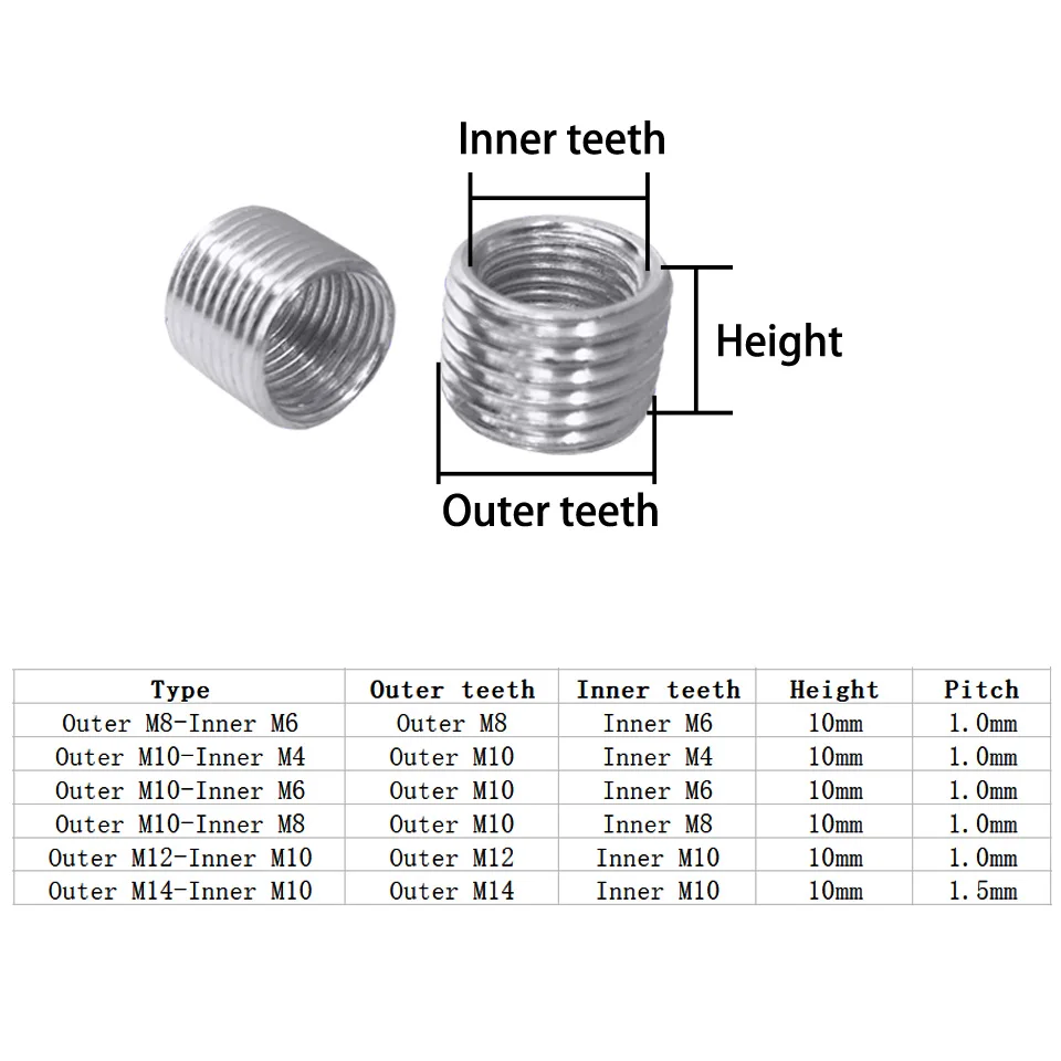 Винт адаптера внутренних и внешних зубьев M14 M12 M10 M8 M6, 5 шт.
