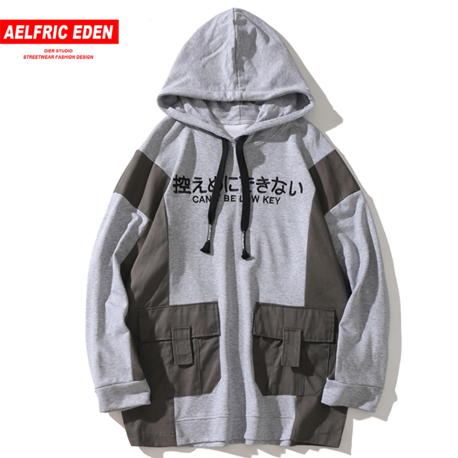 Aelfric Eden японский стиль Лоскутные Карманы Мужские толстовки Harajuku уличная толстовка с капюшоном хип хоп Повседневный хлопковый пуловер