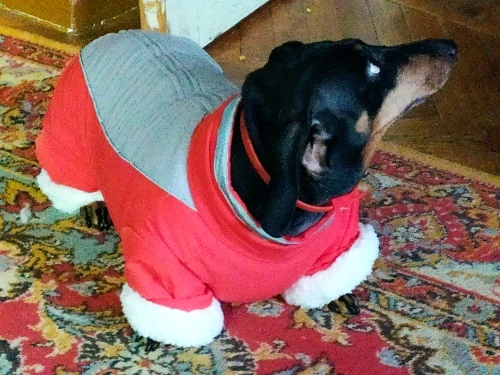 Ну сказать, что довольна заказом, это ничего не сказать. Эмоции переполняют после примерки на свою таксу. Он у меня старенький, 15 лет псу. Как ни кто нуждается в тепле, они и так мерзлявые. Но вы не представляете на сколько удачен данный комбез. Не успели получить, произвели примерку. Супер!!! Как будто на него сшили. В этой модели продумано все, даже горловина удлиненная. Огромное спасибо продавцу и всем рекомендую. Придерживайтесь размеров продавца.